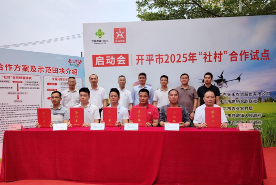 為深入貫徹習近平總書記對供銷合作社工作重要指示精神,積極推廣“社村”合作全程托管模式,4月10日上午,開平市2025年“社村”合作試點啟動會在蒼城鎮(zhèn)舉辦,通過整合供銷社系統(tǒng)資源與農村集體經濟組織優(yōu)勢,助力新型農村集體經濟發(fā)展。來自廣東天禾農資股份有限公司、開平市府辦、市供銷社、市農業(yè)農村局、蒼城、百合、赤坎鎮(zhèn)的領導同志、各基層供銷社以及15個村委會代表等參加本次啟動會。 啟動會現場,現代農機的轟鳴聲此起彼伏,拖拉機正在翻耕土壤,為播種做準備;高速插秧機在田間來回穿梭,片刻工夫,稻田里便出現了一排排整齊的禾苗;農用無人機大顯身手,在稻田上施肥作業(yè),短短幾分鐘便完成了大片農田的飛防任務,田間地頭呈現一片繁忙、熱鬧的景象,展現出智慧農業(yè)的高效與精準。 啟動會上,開平市供銷社黨組成員、副主任馮玉愛為啟動會致辭,開平供銷優(yōu)禾農業(yè)技術服務有限公司總經理向與會人員介紹了示范田基本情況以及“社村”合作方案,蒼城鎮(zhèn)黨委委員、新村村黨支部第一書記邵安作了“社村”合作全程托管服務模式經驗分享。 隨后,開平供銷優(yōu)禾農業(yè)技術服務有限公司與開平市沙蒼龍供銷中心社、開平市達榮供銷中心社,以及蒼城鎮(zhèn)的蒼農商貿有限公司、百合鎮(zhèn)儒北村、赤坎鎮(zhèn)新建村分別簽訂了“社村”合作協(xié)議,標志著開平市農業(yè)社會化服務體系建設邁出關鍵一步。此次合作將重點打造140畝示范田,通過"公司+基層社+村集體"的創(chuàng)新模式,為當地農戶提供耕、種、管、收、銷全程農業(yè)社會化服務。 “社村”合作模式是供銷社探索新型農村集體經濟發(fā)展的新路徑,旨在激發(fā)農資資源要素活力,讓農村土地煥發(fā)出新的生機。今年以來,開平市供銷社大力推廣“社村”合作試點工作,引進服務組織先進技術和專業(yè)人才,對村集體土地實施全流程托管,建立農產品保底收購風險防范機制,實現農村集體收入的穩(wěn)步提升。目前,開平市供銷社在全市簽約農業(yè)社會化服務面積近14萬畝。 下一步,開平市供銷社將以此次合作為契機,繼續(xù)擴大“社村”合作覆蓋面,進一步完善農機作業(yè)、農資供應、技術指導等社會化服務體系,助力農業(yè)增效、農民增收,為鄉(xiāng)村振興提供更強支撐,助力“百千萬工程”高質量發(fā)展。