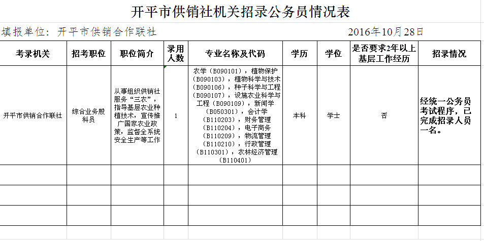 【招聘】開平市供銷合作聯(lián)社2016年度招錄公務(wù)員情況