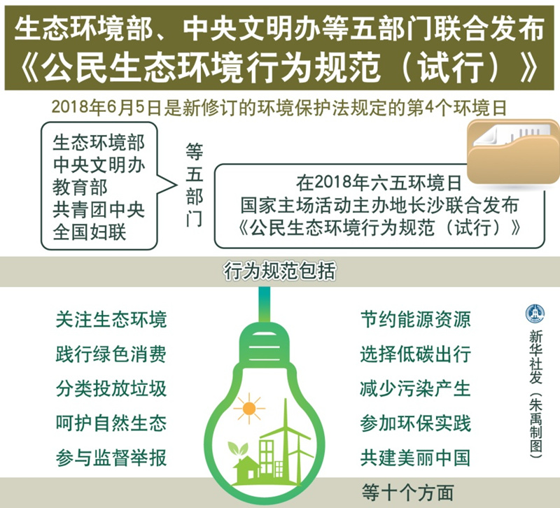 圖表:生態(tài)環(huán)境部、中央文明辦等五部門聯(lián)合發(fā)布《公民生態(tài)環(huán)境行為規(guī)范(試行)》 新華社發(fā) 朱禹 制圖