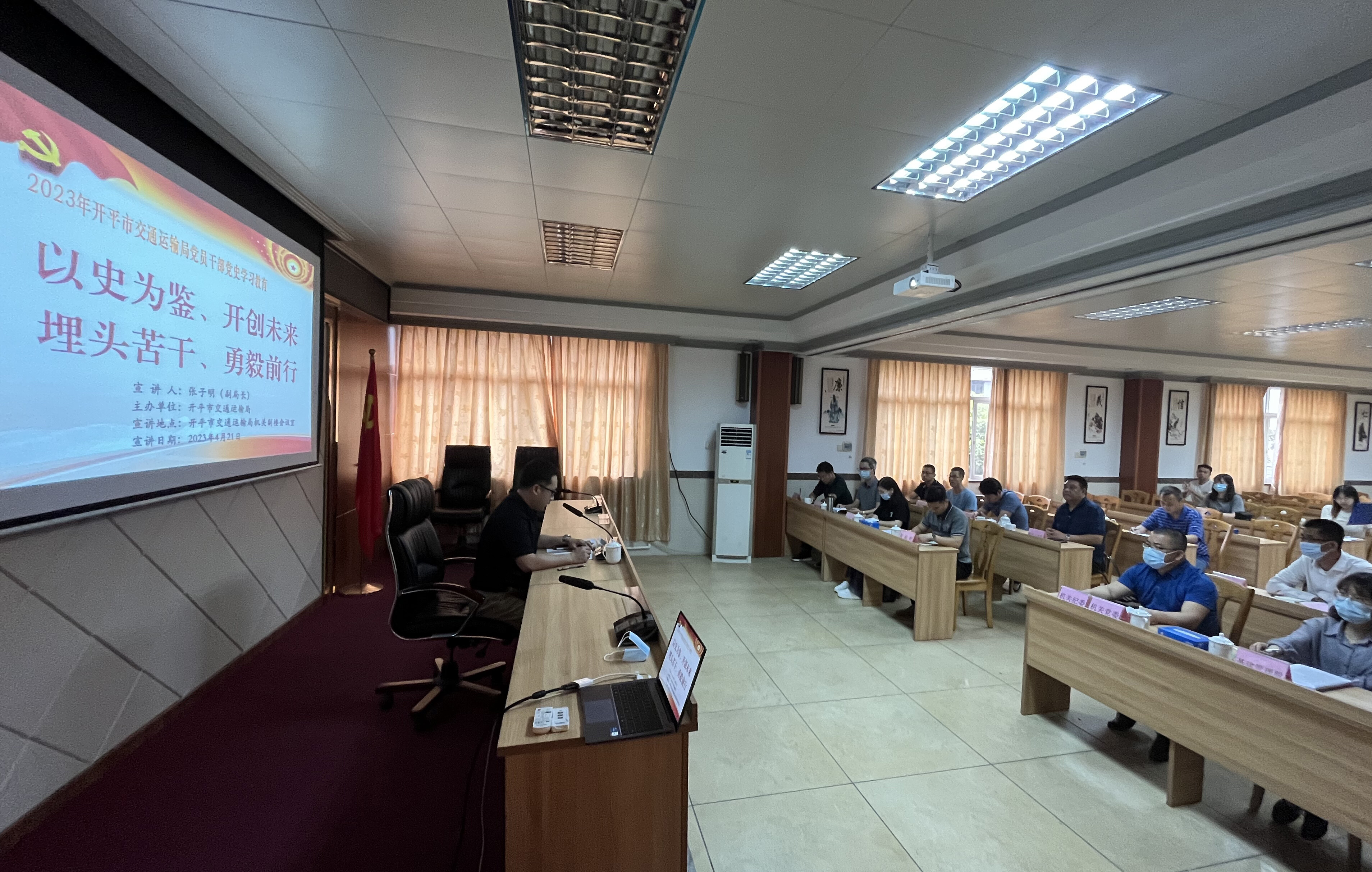 為深入學(xué)習(xí)貫徹黨的二十大精神,堅(jiān)持以習(xí)近平新時(shí)代中國特色社會(huì)主義思想為指導(dǎo),扎實(shí)推動(dòng)黨史學(xué)習(xí)教育常態(tài)化、長效化,引導(dǎo)黨員干部樹立正確黨史觀,4月21日,市交通運(yùn)輸局副局長張子明同志為全局股級以上黨員領(lǐng)導(dǎo)干部宣講了一堂題為“以史為鑒、開創(chuàng)未來、埋頭苦干、勇毅前行”黨史學(xué)習(xí)教育專題黨課。