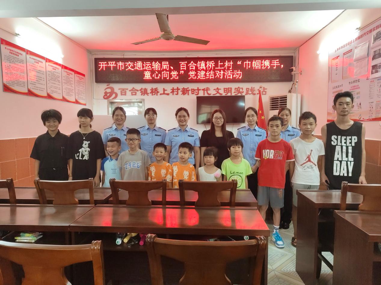 為深入學(xué)習(xí)貫徹黨的二十屆三中全會(huì)精神,全面推進(jìn)鄉(xiāng)村振興,將黨的最新理論成果和關(guān)懷傳遞到廣大少年兒童的心中,7月30日,開平市交通運(yùn)輸局“巾幗頭雁”市直導(dǎo)師駱妙嬋同志帶領(lǐng)“邑路芳華創(chuàng)新工作室”成員到百合鎮(zhèn)橋上村開展“巾幗攜手 童心向黨”黨建結(jié)對(duì)活動(dòng)。橋上村黨員、家長(zhǎng)和兒童共計(jì)30余人參加活動(dòng)。