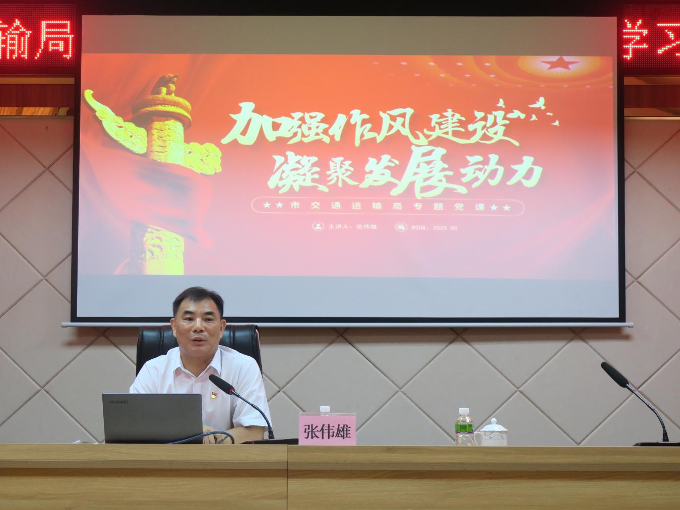 為深入學(xué)習(xí)貫徹中央八項(xiàng)規(guī)定精神,推動(dòng)全局作風(fēng)建設(shè)走深走實(shí),5月30日,市交通運(yùn)輸局開(kāi)展深入貫徹中央八項(xiàng)規(guī)定精神學(xué)習(xí)教育專(zhuān)題黨課。市交通運(yùn)輸局黨組書(shū)記、局長(zhǎng)張偉雄同志為市交通運(yùn)輸局機(jī)關(guān)黨支部、市交通運(yùn)輸服務(wù)中心黨支部、市地方公路水運(yùn)服務(wù)中心黨支部全體黨員以及市航運(yùn)總公司黨總支部、四方黨建共建黨支部黨員代表作專(zhuān)題授課。