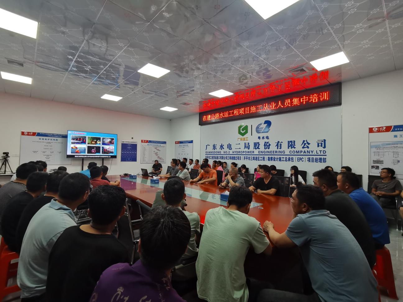 此次培訓充分結(jié)合工程施工實際,在G325國道鶴山址山至開平塘口段改建工程、三埠港搬遷項目(開平市三埠港區(qū)工程)、開平市縣道紅龍線(梁金山旅游公路及金章大道段)工程—金章大道段等3個項目部開設(shè)培訓會場,并在確?,F(xiàn)場安全施工的前提下,采用夜間培訓方式,安排管理人員及一線工人分期參加,以減少對項目施工的影響,方便工人就近參加。此次培訓通過視頻講解和專人講座,組織參與培訓人員學習作業(yè)人員基本安全常識、班組日常安全管理、個人勞動防護及工程臨邊防護、施工現(xiàn)場臨時用電、施工現(xiàn)場急救常識和農(nóng)民工工資管理等方面知識。