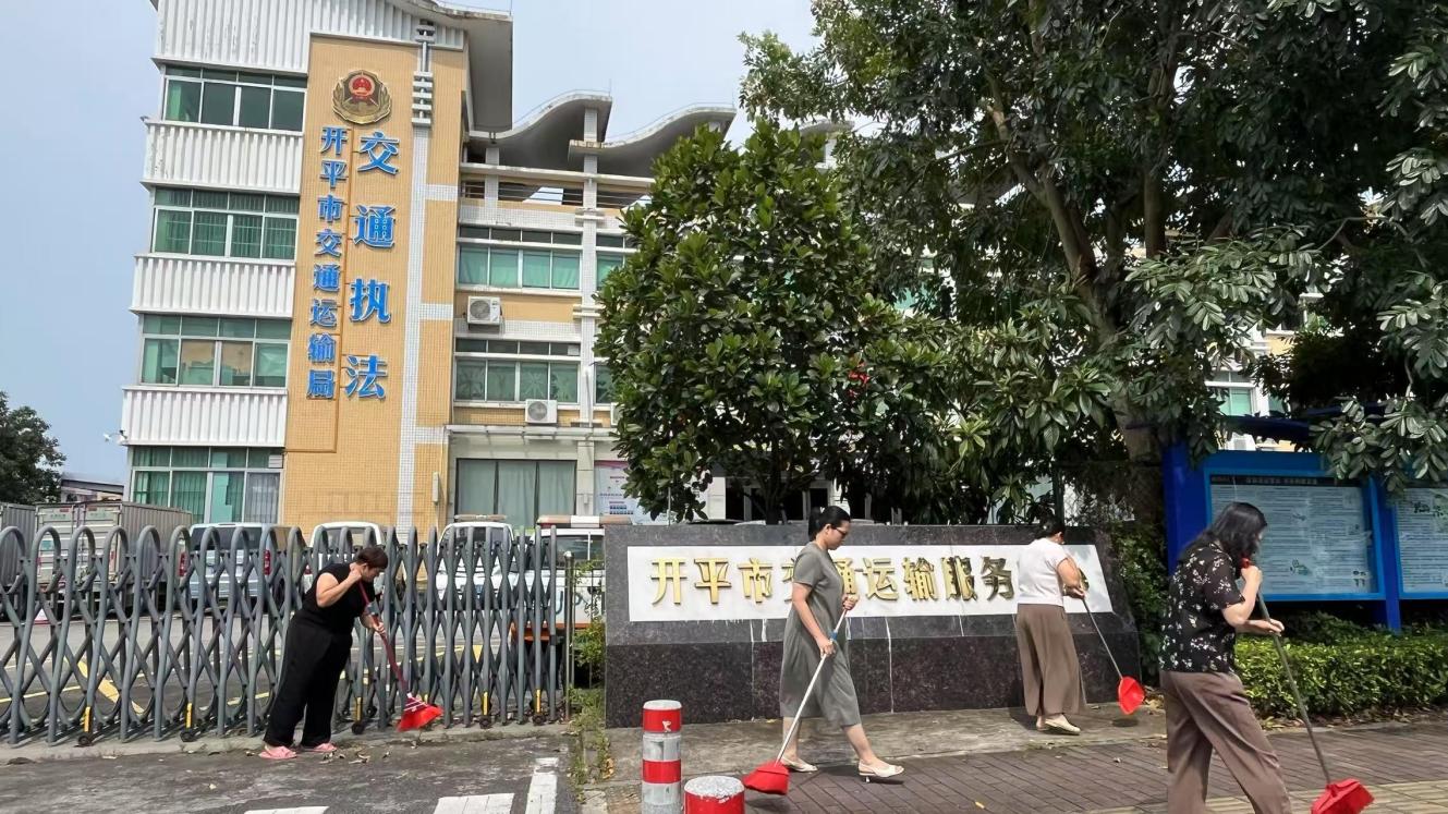 開平市交通運(yùn)輸服務(wù)中心對周邊地面進(jìn)行清掃