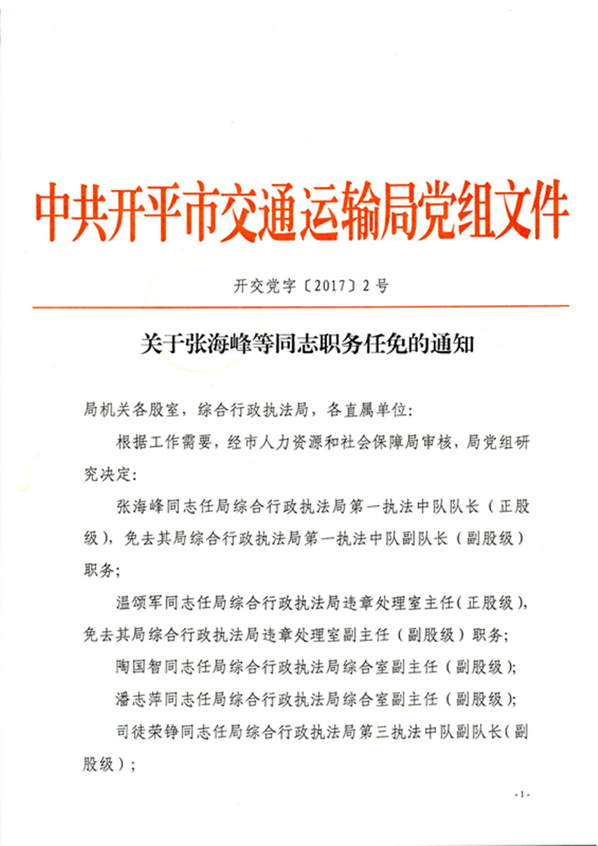 關于張海峰等同志職務任免的通知