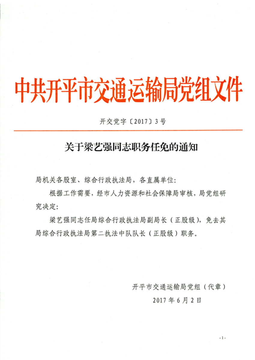 關(guān)于梁藝強(qiáng)同志職務(wù)任免的通知