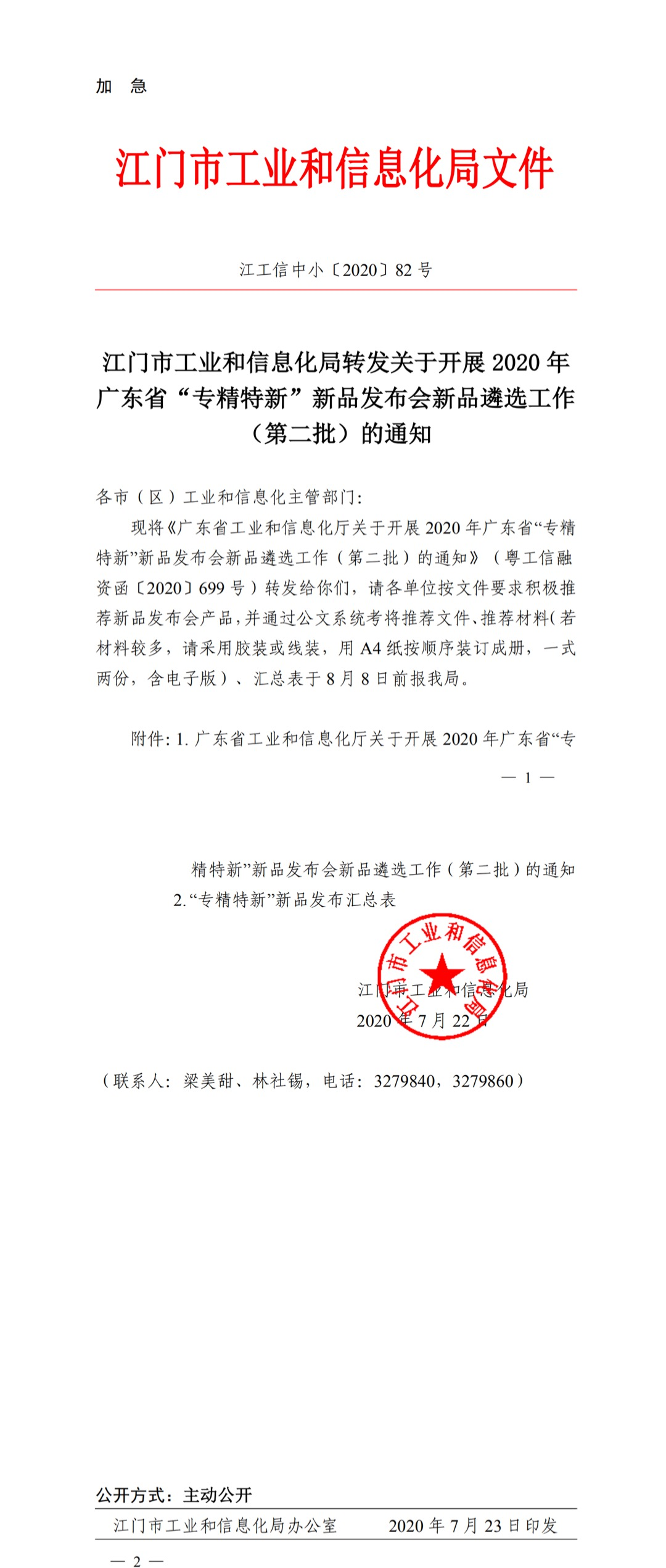 江門市工業(yè)和信息化局轉(zhuǎn)發(fā)關(guān)于開展 2020 年 廣東省“專精特新”新品發(fā)布會(huì)新品遴選工作 (第二批)的通知