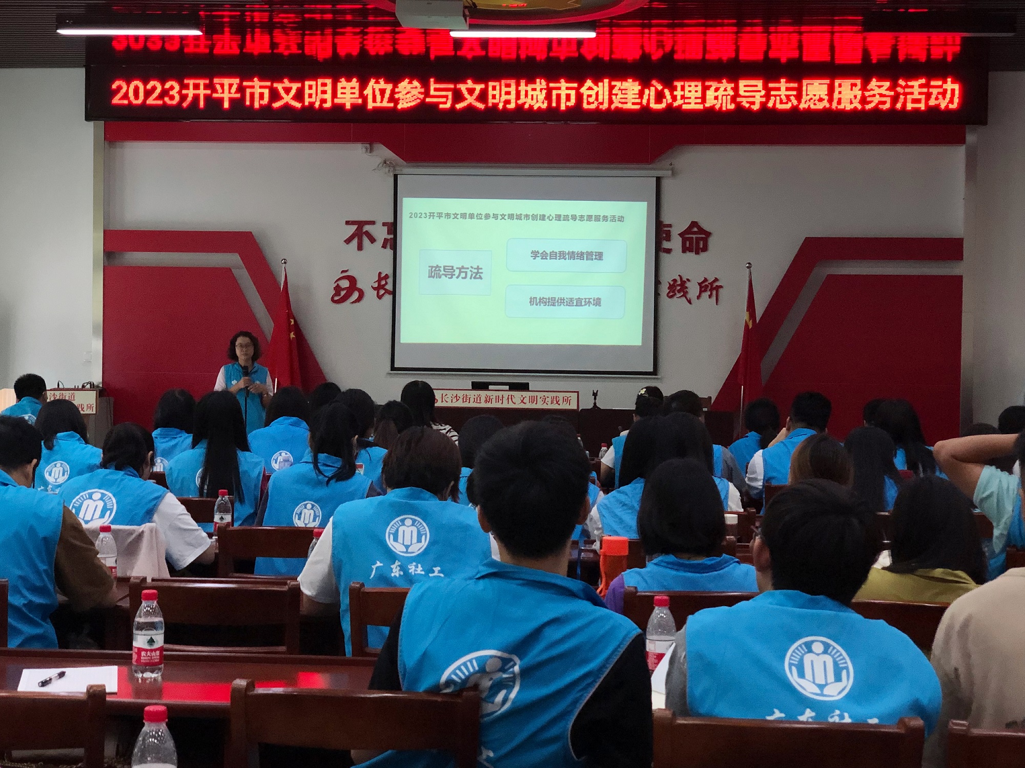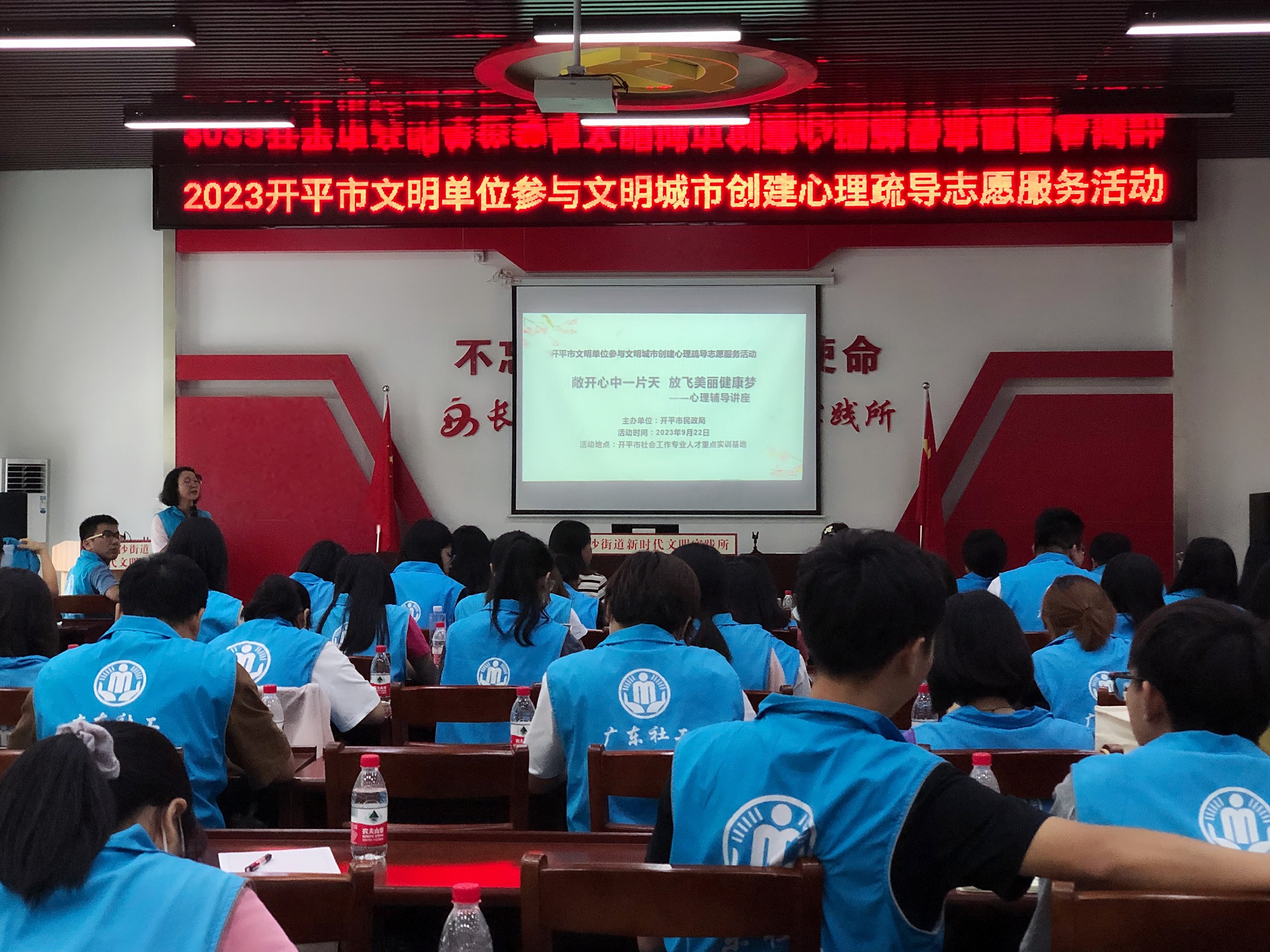 為進(jìn)一步加強(qiáng)社工心理健康教育工作,提高他們的心理健康意識(shí),培養(yǎng)健康積極的心理品質(zhì),以良好的心態(tài)做好本職工作,9月22日上午,開(kāi)平市民政局在社會(huì)工作專(zhuān)業(yè)人才重點(diǎn)實(shí)訓(xùn)基地開(kāi)展“敞開(kāi)心中一片天 放飛美麗健康夢(mèng)”文明城市創(chuàng)建心理疏導(dǎo)志愿服務(wù)活動(dòng)。