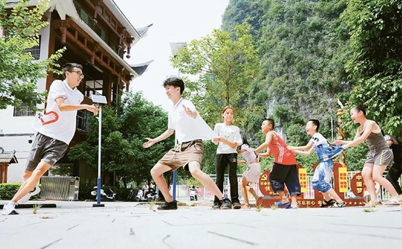 圖為2023年8月13日,在廣西柳州融水苗族自治縣易地扶貧搬遷安置點(diǎn)苗家小鎮(zhèn)社區(qū),西北大學(xué)研究生支教團(tuán)志愿者開展暑期志愿服務(wù)活動(dòng),為留守兒童和其他孩子提供家教、游戲和閱讀等服務(wù),讓孩子們度過(guò)快樂(lè)充實(shí)的暑假。 人民圖片 龍濤/攝