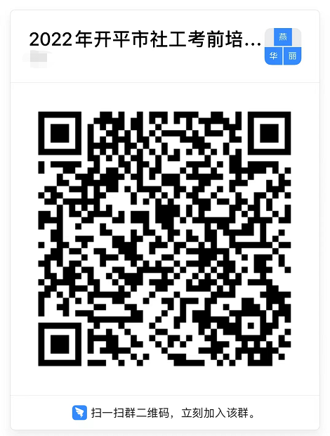 (一)線上培訓:通過指定二維碼成功加入群組,即可參加2022年開平市社會工作者考前培訓班,學員可通過網(wǎng)絡直播平臺參加專業(yè)講師線上培訓課程。