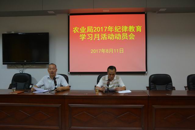 會(huì)上,首先由謝沃豪紀(jì)檢組長(zhǎng)宣讀了《農(nóng)業(yè)局2017年開展紀(jì)律教育學(xué)習(xí)月活動(dòng)工作方案》,隨后張?zhí)戾a局長(zhǎng)作動(dòng)員講話,針對(duì)今年的紀(jì)律教育學(xué)習(xí)月活動(dòng)主題,張局長(zhǎng)提出要把握好三方面的工作:一是把握好紀(jì)律教育與“兩學(xué)一做”的有機(jī)結(jié)合;二是把握好教育重點(diǎn);三是把握好黨內(nèi)政治文化教育和警示教育。