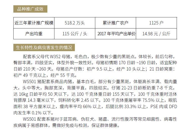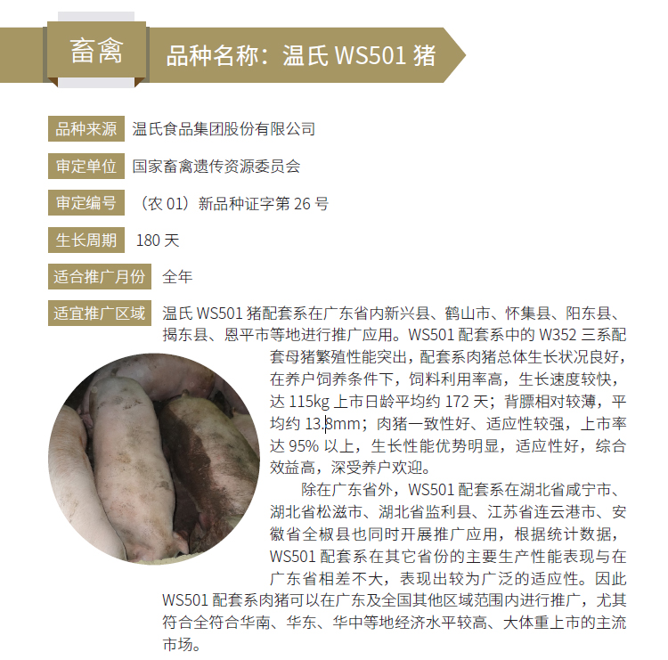 2019年農(nóng)業(yè)主導(dǎo)品種:溫氏WS501豬
