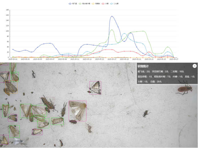 隨著農(nóng)業(yè)現(xiàn)代化進(jìn)程的加快,農(nóng)作物病蟲害防治在農(nóng)業(yè)生產(chǎn)中的作用變得越來越重要。那怎樣提高農(nóng)藥利用率,保障糧食生產(chǎn)安全?又怎樣減少農(nóng)藥使用量,保障農(nóng)產(chǎn)品質(zhì)量安全呢?近年來,開平市大力建設(shè)農(nóng)作物病蟲害智能化監(jiān)測體系,推廣植保無人機(jī)統(tǒng)防統(tǒng)治技術(shù),“蟲臉識別”加“蟲口奪糧”,為“發(fā)展農(nóng)業(yè)新質(zhì)生產(chǎn)力”注入植保新力量。 科技賦能病蟲測報,“蟲臉識別”顯身手 “這是我們各個病蟲害智能監(jiān)測點(diǎn)的實時數(shù)據(jù),在電腦界面上就能清晰地展示出害蟲的照片、名稱、數(shù)量……”開平市農(nóng)業(yè)綜合服務(wù)中心植保員打開電腦上的病蟲害物聯(lián)網(wǎng)數(shù)據(jù)分析系統(tǒng),點(diǎn)擊相關(guān)選項后,就能清晰地看到一個圖文一體的畫面,其中不但有實時拍攝的害蟲照片,旁邊還附有害蟲種類和數(shù)量,十分精準(zhǔn)。這是我市積極推動農(nóng)作物病蟲害智能化監(jiān)測體系建設(shè)的成果之一。 病蟲測報是農(nóng)作物病蟲害防控的‘偵察兵’,想讓病蟲害防控更科學(xué),就必須提供更精準(zhǔn)的預(yù)測預(yù)報。當(dāng)下,刷臉解鎖、刷臉支付等人臉識別技術(shù)已進(jìn)入大眾的生活,把這一項刷臉技術(shù)用在“蟲臉”上,就是我們開展農(nóng)作物病蟲害智能化監(jiān)測體系建設(shè)的有力探索。“蟲臉識別”是一種基于人工智能圖像識別和檢測技術(shù),讓系統(tǒng)自動識別照片中害蟲種類和數(shù)量的病蟲害測報手段,經(jīng)由拍攝、上傳、分析、反饋等環(huán)節(jié),植保人員和種田大戶可以快速了解農(nóng)田內(nèi)的病蟲害情況。 “蟲臉識別”2022年開始走入開平市的田間地頭。開平市農(nóng)業(yè)綜合服務(wù)中心通過統(tǒng)籌各級資金、申請上級項目、合理選點(diǎn)布點(diǎn)等措施著力推動全市農(nóng)作物病蟲害智能化監(jiān)測體系建設(shè)。截至2024年,全市建成農(nóng)作物病蟲害智能化監(jiān)測點(diǎn)7個、性誘監(jiān)測點(diǎn)13個,保有農(nóng)作物病蟲害智能化監(jiān)測設(shè)備48臺,包含智能性誘設(shè)備、智能燈誘設(shè)備、智能色誘設(shè)備、苗情監(jiān)測設(shè)備、墑情監(jiān)測設(shè)備、農(nóng)田小氣候監(jiān)測設(shè)備等,監(jiān)測預(yù)警體系進(jìn)一步完善。通過智能化監(jiān)測和日常人工調(diào)查監(jiān)測有機(jī)結(jié)合,我市農(nóng)作物病蟲害短時預(yù)警準(zhǔn)確率達(dá)到95%以上,能夠指導(dǎo)不同鄉(xiāng)鎮(zhèn)開展針對性科學(xué)防治,農(nóng)作物病蟲監(jiān)測預(yù)警的能力和水平得到全面提升。 要守護(hù)水稻健康安全生長,除了要病蟲測得準(zhǔn),還要防得好。 智能防控病蟲為害,“蟲口奪糧”保豐收 我們走進(jìn)長沙街道民強(qiáng)村的水稻田間,田里的水稻生長進(jìn)入了幼穗分化期,一片生機(jī)盎然的景象,伴隨著旋翼聲響,一架植保無人機(jī)在飛手的操作下騰空而起,沿著稻田勻速前行,霧化農(nóng)藥從機(jī)身下的噴淋系統(tǒng)緩緩傾灑,均勻施向稻田,短短十幾分鐘,數(shù)畝稻田已經(jīng)完成施藥,整個防治過程快捷高效。 “今天天氣好,非常適合無人機(jī)作業(yè),趁著這個天氣噴灑農(nóng)藥,有助于提高農(nóng)藥利用率、提升防治效果?!敝脖<夹g(shù)員對記者說?!耙郧拔覀兌际遣捎萌斯ご蛩帲肆M(fèi)用高、效率低且用藥量大,現(xiàn)在有了植保無人機(jī),一天能完成200多畝的防治面積,農(nóng)藥用量也大大減少,確實能節(jié)本增效?!遍_平市供銷優(yōu)禾農(nóng)服公司負(fù)責(zé)人說道。 我市2025年早造水稻種植面積29.69萬畝,當(dāng)前早造水稻生長已普遍進(jìn)入幼穗分化期,同時也是稻縱卷葉螟、稻飛虱、鉆蛀性螟蟲、紋枯病及稻瘟病等病蟲害防治的關(guān)鍵時期,植保無人機(jī)統(tǒng)防統(tǒng)治技術(shù)的應(yīng)用為病蟲防治上了“高效保險”,是實現(xiàn)“抓早治小”的關(guān)鍵手段。近年來,我市積極推廣病蟲害植保無人機(jī)統(tǒng)防統(tǒng)治技術(shù),通過購買服務(wù)、農(nóng)機(jī)補(bǔ)貼、服務(wù)補(bǔ)貼等方式鼓勵社會化服務(wù)主體積極參與病蟲害統(tǒng)防統(tǒng)治服務(wù)行動,預(yù)計今年年底統(tǒng)防統(tǒng)治覆蓋率將提升至60%左右,持續(xù)推動我市農(nóng)業(yè)種植智能化、高效化,打好“蟲口奪糧”保衛(wèi)戰(zhàn),護(hù)好群眾的“米袋子”。