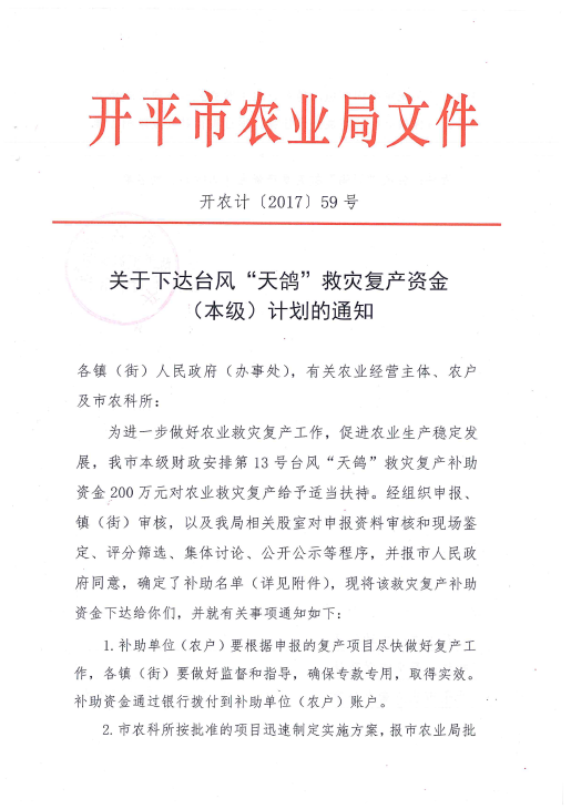關(guān)于下達(dá)臺(tái)風(fēng)“天鴿”救災(zāi)復(fù)產(chǎn)資金(本級(jí))計(jì)劃的通知