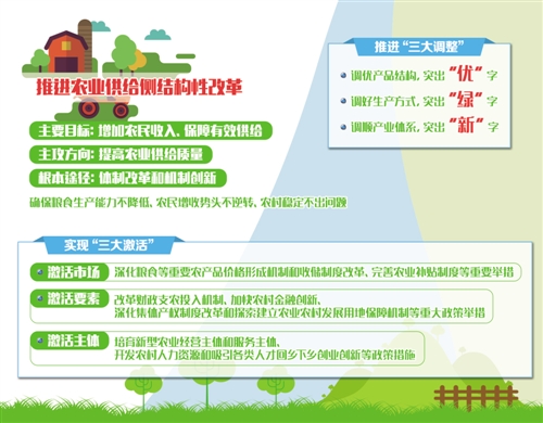 中國經(jīng)濟網(wǎng)北京2月5日訊 《中共中央國務(wù)院關(guān)于深入推進(jìn)農(nóng)業(yè)供給側(cè)結(jié)構(gòu)性改革加快培育農(nóng)業(yè)農(nóng)村發(fā)展新動能的若干意見》今天發(fā)布,這是新世紀(jì)以來指導(dǎo)“三農(nóng)”工作的第十四份中央一號文件。 文件全文約12000字,共分6個部分33條,包括:優(yōu)化產(chǎn)品產(chǎn)業(yè)結(jié)構(gòu),著力推進(jìn)農(nóng)業(yè)提質(zhì)增效;推行綠色生產(chǎn)方式,增強農(nóng)業(yè)可持續(xù)發(fā)展能力;壯大新產(chǎn)業(yè)新業(yè)態(tài),拓展農(nóng)業(yè)產(chǎn)業(yè)鏈價值鏈;強化科技創(chuàng)新驅(qū)動,引領(lǐng)現(xiàn)代農(nóng)業(yè)加快發(fā)展;補齊農(nóng)業(yè)農(nóng)村短板,夯實農(nóng)村共享發(fā)展基礎(chǔ);加大農(nóng)村改革力度,激活農(nóng)業(yè)農(nóng)村內(nèi)生發(fā)展動力。 文件指出,推進(jìn)農(nóng)業(yè)供給側(cè)結(jié)構(gòu)性改革,要在確保國家糧食安全的基礎(chǔ)上,緊緊圍繞市場需求變化,以增加農(nóng)民收入、保障有效供給為主要目標(biāo),以提高農(nóng)業(yè)供給質(zhì)量為主攻方向,以體制改革和機制創(chuàng)新為根本途徑,優(yōu)化農(nóng)業(yè)產(chǎn)業(yè)體系、生產(chǎn)體系、經(jīng)營體系,提高土地產(chǎn)出率、資源利用率、勞動生產(chǎn)率,促進(jìn)農(nóng)業(yè)農(nóng)村發(fā)展由過度依賴資源消耗、主要滿足量的需求,向追求綠色生態(tài)可持續(xù)、更加注重滿足質(zhì)的需求轉(zhuǎn)變。 文件強調(diào),推進(jìn)農(nóng)業(yè)供給側(cè)結(jié)構(gòu)性改革是一個長期過程,處理好政府和市場關(guān)系、協(xié)調(diào)好各方面利益,面臨許多重大考驗。必須直面困難和挑戰(zhàn),堅定不移推進(jìn)改革,勇于承受改革陣痛,盡力降低改革成本,積極防范改革風(fēng)險,確保糧食生產(chǎn)能力不降低、農(nóng)民增收勢頭不逆轉(zhuǎn)、農(nóng)村穩(wěn)定不出問題。 中共中央國務(wù)院關(guān)于深入推進(jìn)農(nóng)業(yè)供給側(cè)結(jié)構(gòu)性改革加快培育農(nóng)業(yè)農(nóng)村發(fā)展新動能的若干意見 經(jīng)過多年不懈努力,我國農(nóng)業(yè)農(nóng)村發(fā)展不斷邁上新臺階,已進(jìn)入新的歷史階段。農(nóng)業(yè)的主要矛盾由總量不足轉(zhuǎn)變?yōu)榻Y(jié)構(gòu)性矛盾,突出表現(xiàn)為階段性供過于求和供給不足并存,矛盾的主要方面在供給側(cè)。近幾年,我國在農(nóng)業(yè)轉(zhuǎn)方式、調(diào)結(jié)構(gòu)、促改革等方面進(jìn)行積極探索,為進(jìn)一步推進(jìn)農(nóng)業(yè)轉(zhuǎn)型升級打下一定基礎(chǔ),但農(nóng)產(chǎn)品供求結(jié)構(gòu)失衡、要素配置不合理、資源環(huán)境壓力大、農(nóng)民收入持續(xù)增長乏力等問題仍很突出,增加產(chǎn)量與提升品質(zhì)、成本攀升與價格低迷、庫存高企與銷售不暢、小生產(chǎn)與大市場、國內(nèi)外價格倒掛等矛盾亟待破解。必須順應(yīng)新形勢新要求,堅持問題導(dǎo)向,調(diào)整工作重心,深入推進(jìn)農(nóng)業(yè)供給側(cè)結(jié)構(gòu)性改革,加快培育農(nóng)業(yè)農(nóng)村發(fā)展新動能,開創(chuàng)農(nóng)業(yè)現(xiàn)代化建設(shè)新局面。 推進(jìn)農(nóng)業(yè)供給側(cè)結(jié)構(gòu)性改革,要在確保國家糧食安全的基礎(chǔ)上,緊緊圍繞市場需求變化,以增加農(nóng)民收入、保障有效供給為主要目標(biāo),以提高農(nóng)業(yè)供給質(zhì)量為主攻方向,以體制改革和機制創(chuàng)新為根本途徑,優(yōu)化農(nóng)業(yè)產(chǎn)業(yè)體系、生產(chǎn)體系、經(jīng)營體系,提高土地產(chǎn)出率、資源利用率、勞動生產(chǎn)率,促進(jìn)農(nóng)業(yè)農(nóng)村發(fā)展由過度依賴資源消耗、主要滿足量的需求,向追求綠色生態(tài)可持續(xù)、更加注重滿足質(zhì)的需求轉(zhuǎn)變。 推進(jìn)農(nóng)業(yè)供給側(cè)結(jié)構(gòu)性改革是一個長期過程,處理好政府和市場關(guān)系、協(xié)調(diào)好各方面利益,面臨許多重大考驗。必須直面困難和挑戰(zhàn),堅定不移推進(jìn)改革,勇于承受改革陣痛,盡力降低改革成本,積極防范改革風(fēng)險,確保糧食生產(chǎn)能力不降低、農(nóng)民增收勢頭不逆轉(zhuǎn)、農(nóng)村穩(wěn)定不出問題。 2017年農(nóng)業(yè)農(nóng)村工作,要全面貫徹黨的十八大和十八屆三中、四中、五中、六中全會精神,以鄧小平理論、“三個代表”重要思想、科學(xué)發(fā)展觀為指導(dǎo),深入貫徹習(xí)近平總書記系列重要講話精神和治國理政新理念新思想新戰(zhàn)略,堅持新發(fā)展理念,協(xié)調(diào)推進(jìn)農(nóng)業(yè)現(xiàn)代化與新型城鎮(zhèn)化,以推進(jìn)農(nóng)業(yè)供給側(cè)結(jié)構(gòu)性改革為主線,圍繞農(nóng)業(yè)增效、農(nóng)民增收、農(nóng)村增綠,加強科技創(chuàng)新引領(lǐng),加快結(jié)構(gòu)調(diào)整步伐,加大農(nóng)村改革力度,提高農(nóng)業(yè)綜合效益和競爭力,推動社會主義新農(nóng)村建設(shè)取得新的進(jìn)展,力爭農(nóng)村全面小康建設(shè)邁出更大步伐。 一、優(yōu)化產(chǎn)品產(chǎn)業(yè)結(jié)構(gòu),著力推進(jìn)農(nóng)業(yè)提質(zhì)增效 1.統(tǒng)籌調(diào)整糧經(jīng)飼種植結(jié)構(gòu)。按照穩(wěn)糧