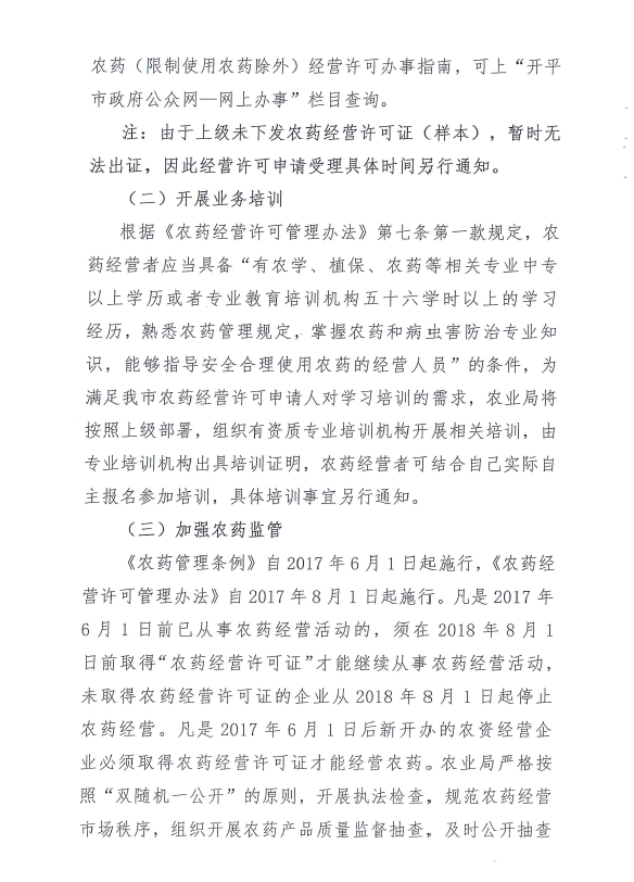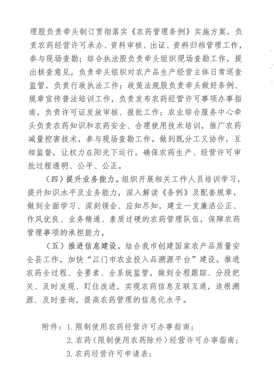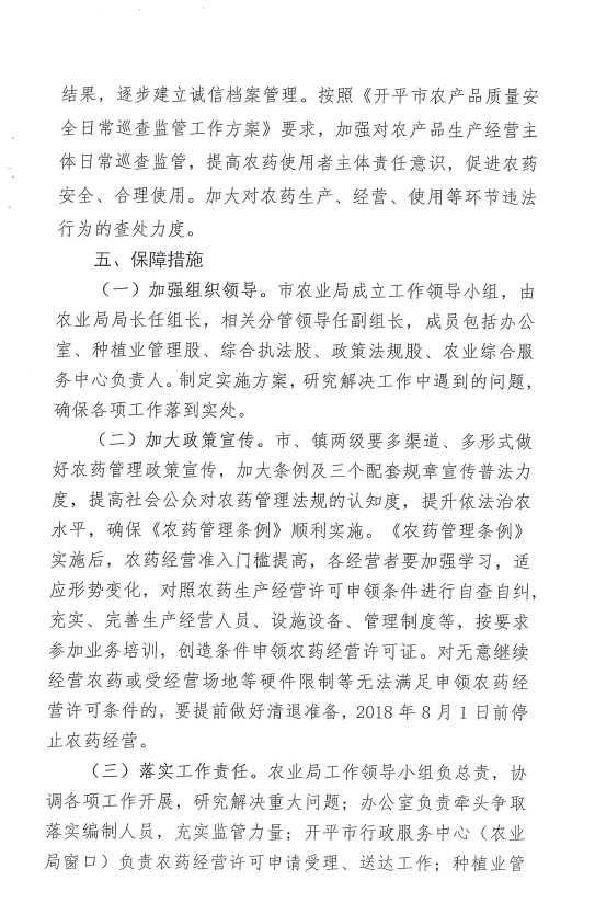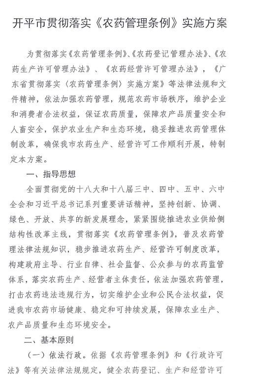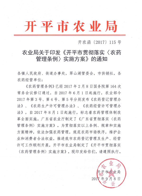 農(nóng)業(yè)局關(guān)于印發(fā)《開平市貫徹落實〈農(nóng)藥管理條例〉實施方案》的通知