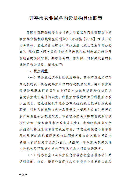 關(guān)于印發(fā)開平市農(nóng)業(yè)局各內(nèi)設(shè)機構(gòu)具體職責(zé)的通知(開農(nóng)[2016]6號)