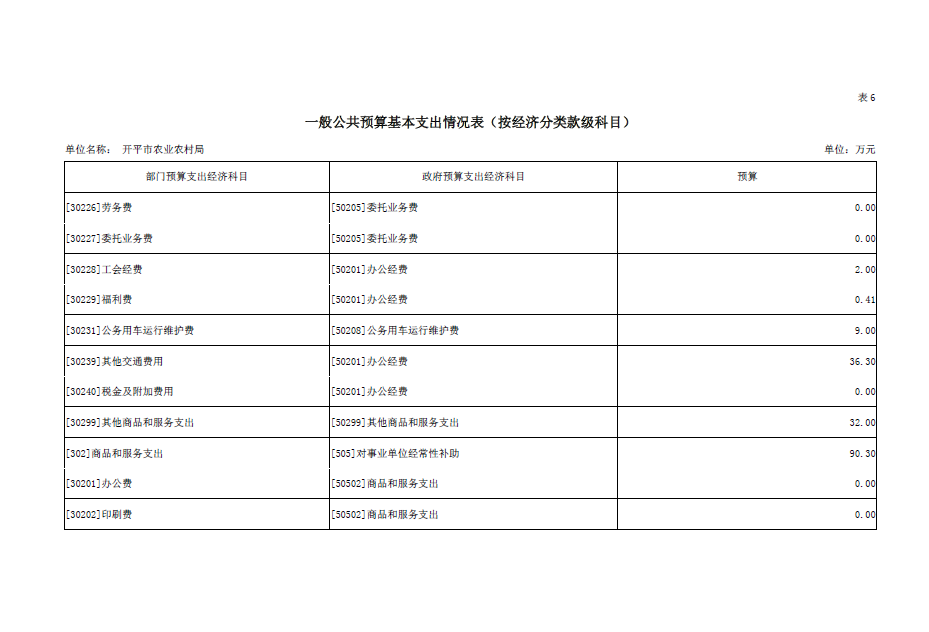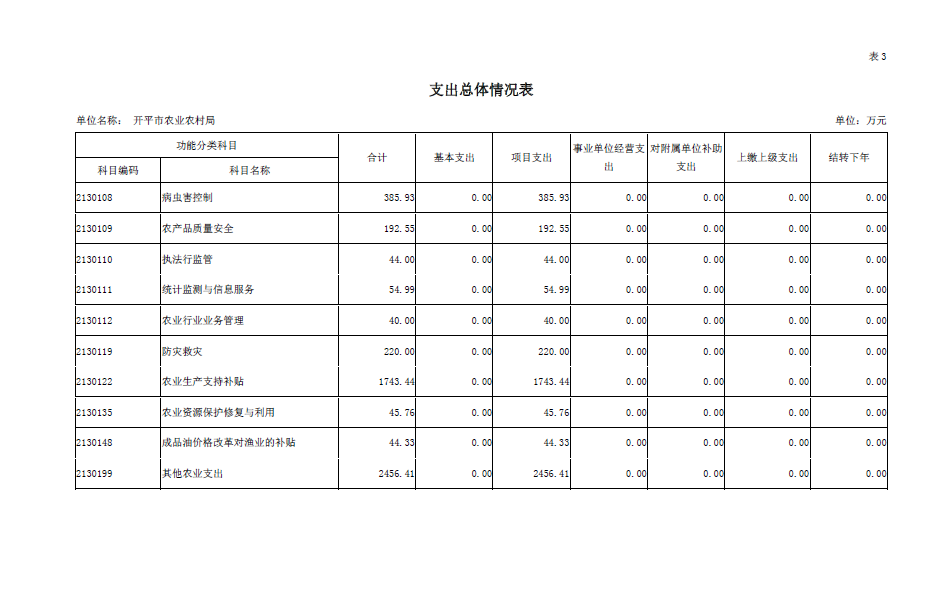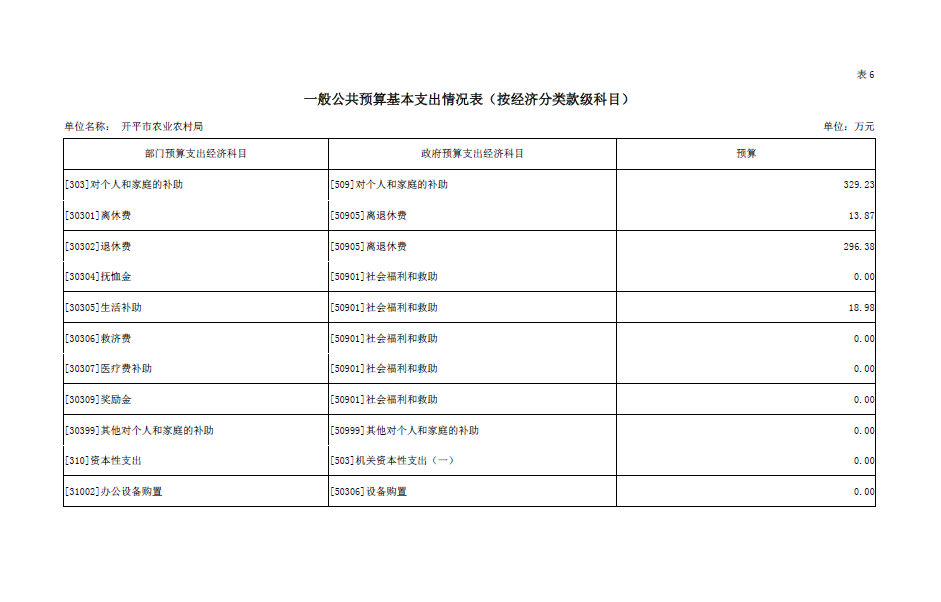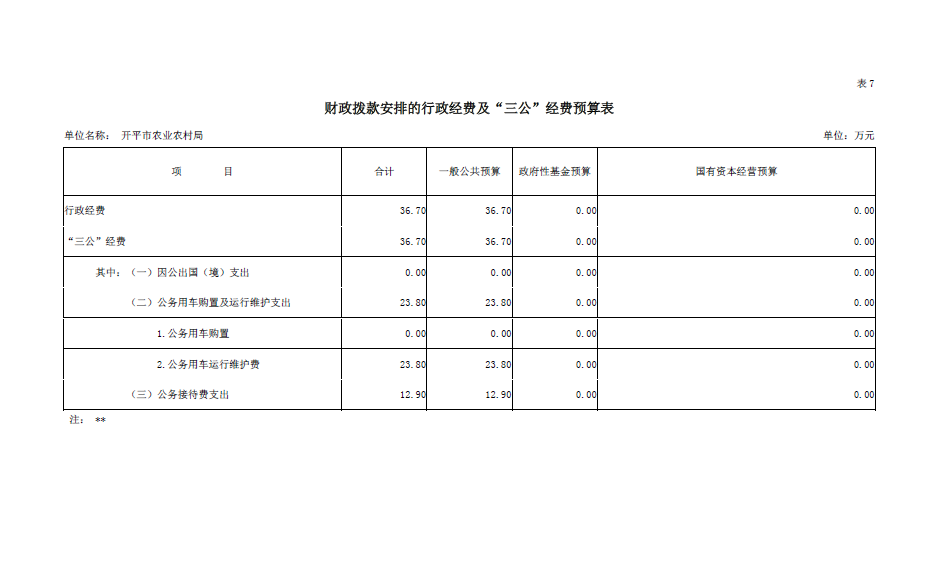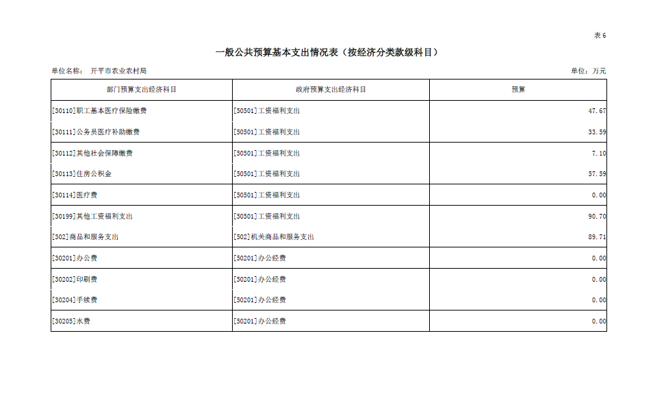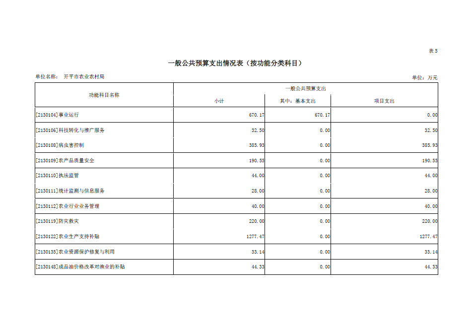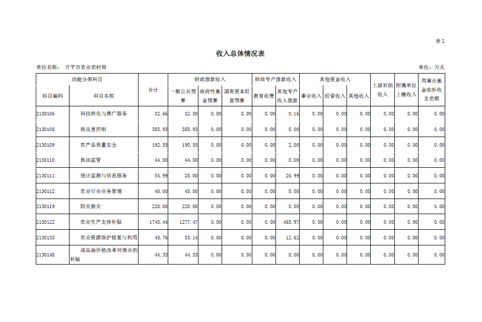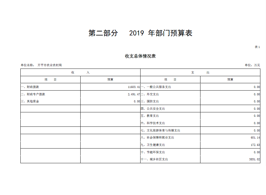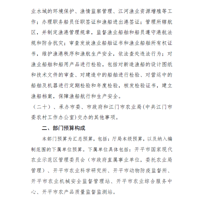 2019年開平市農(nóng)業(yè)農(nóng)村局部門預(yù)算