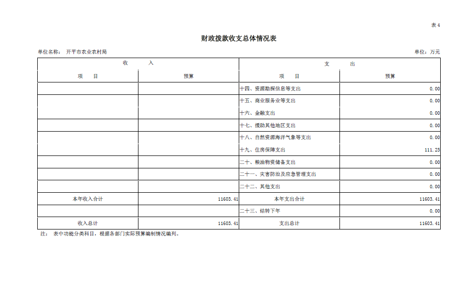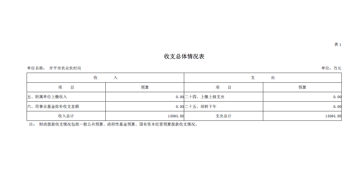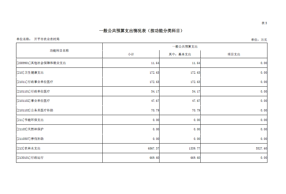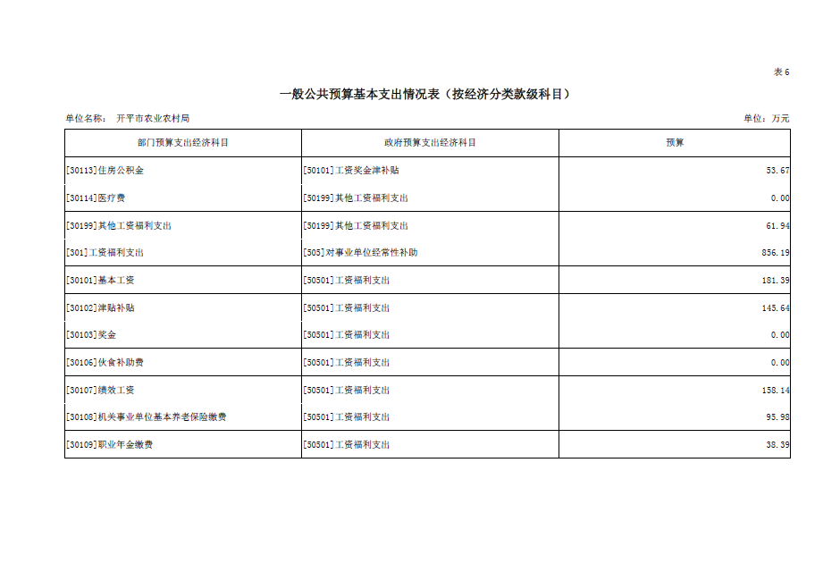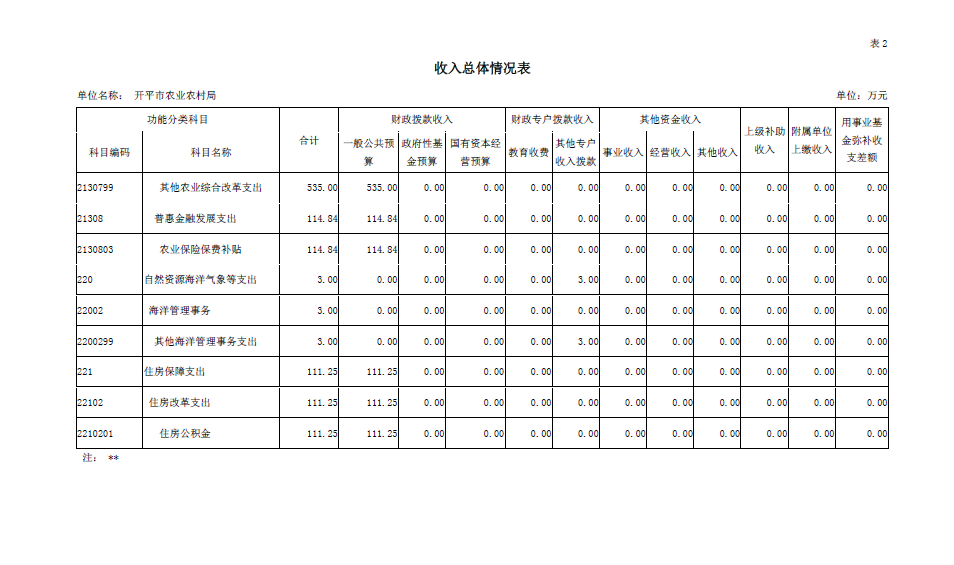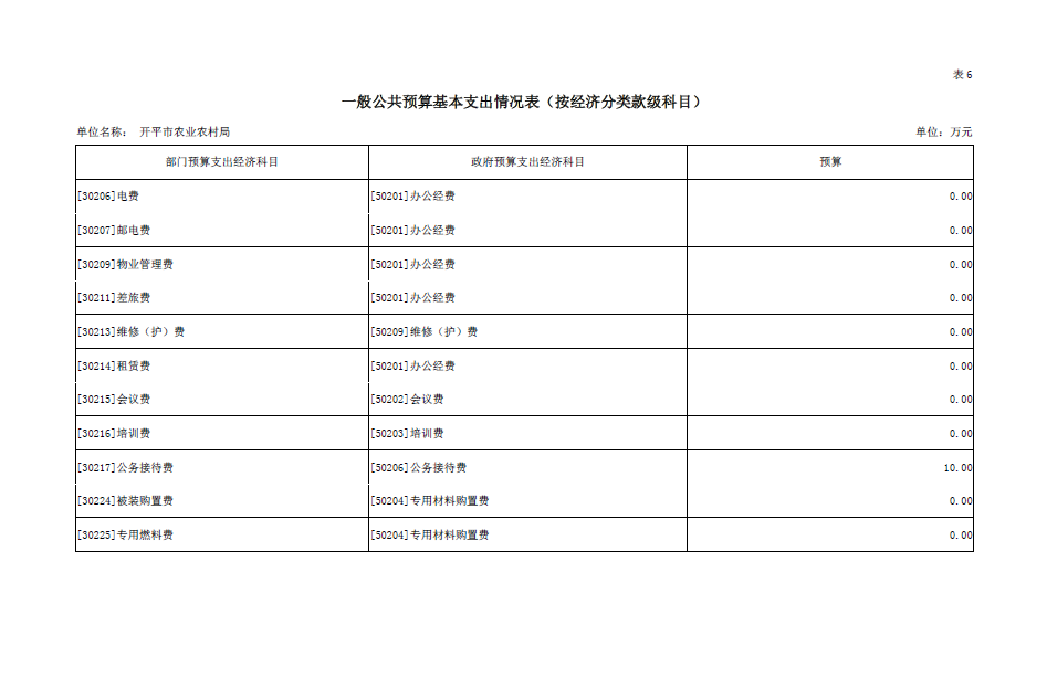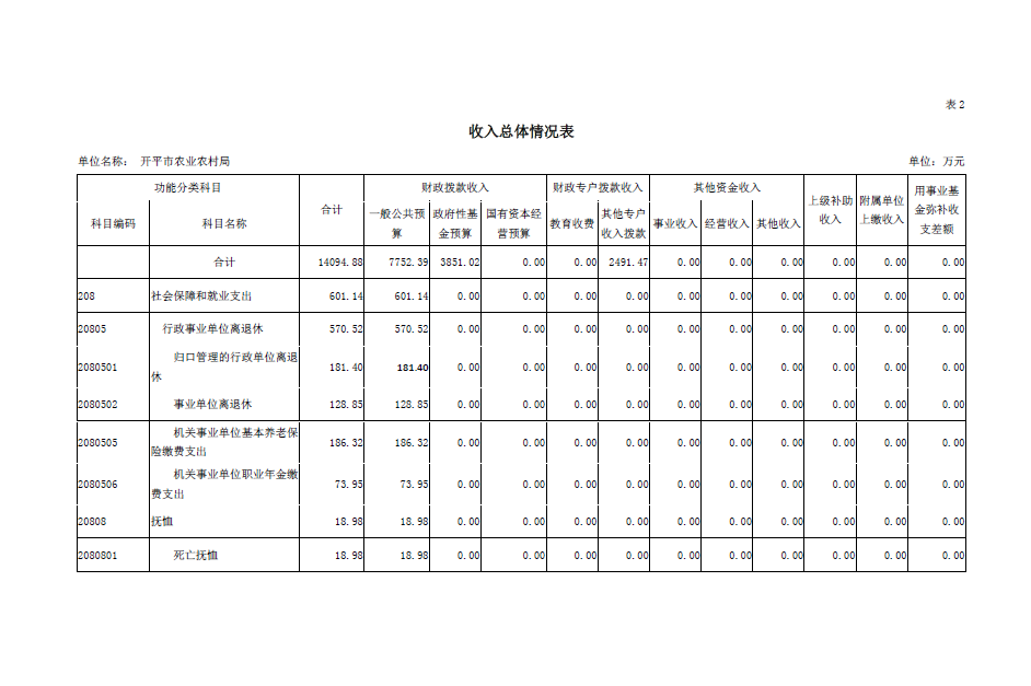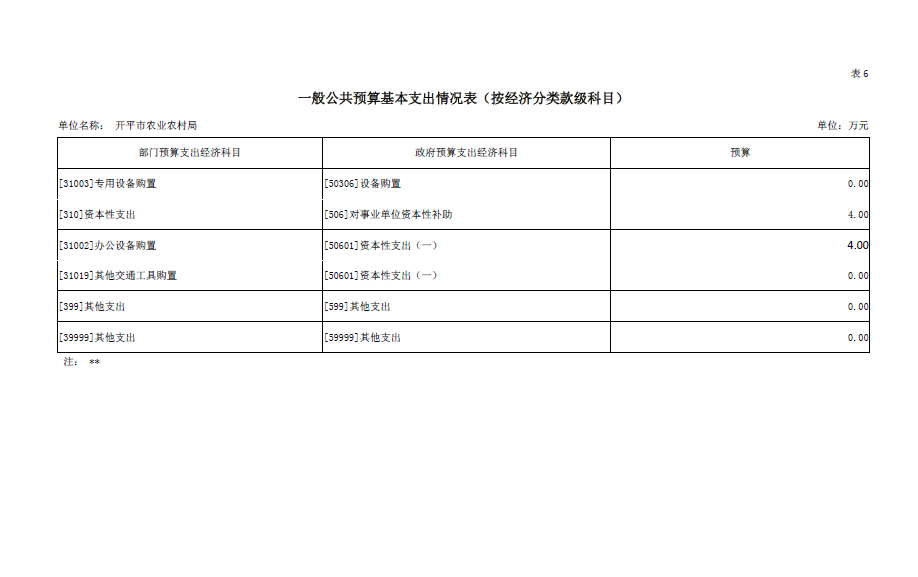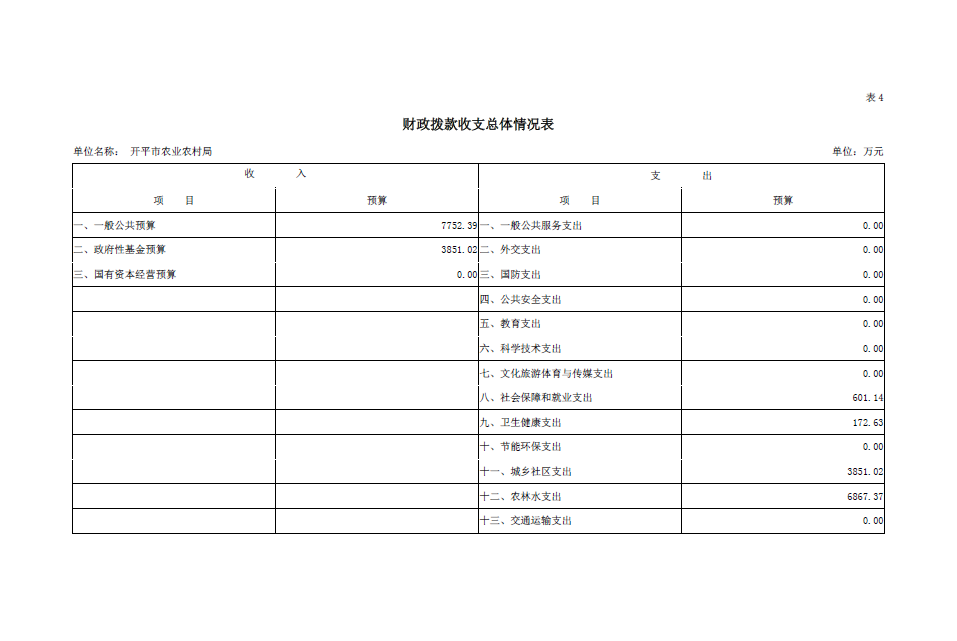 2019年開平市農(nóng)業(yè)農(nóng)村局部門預(yù)算