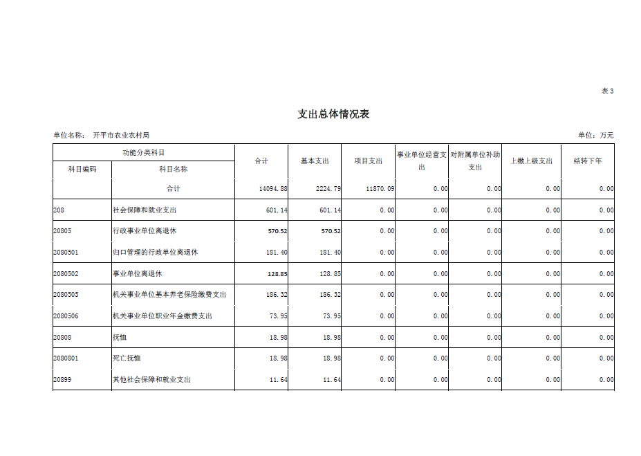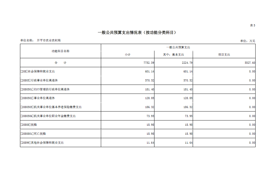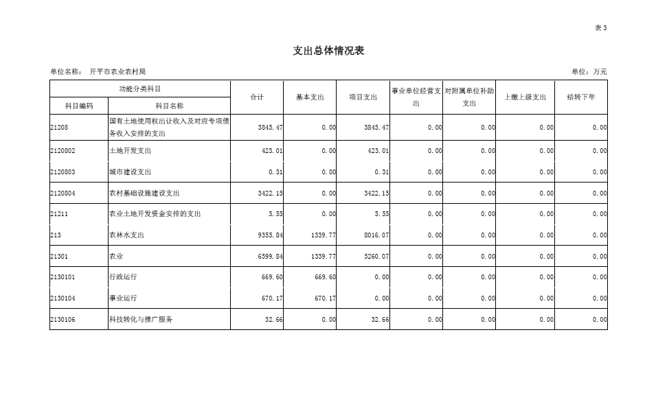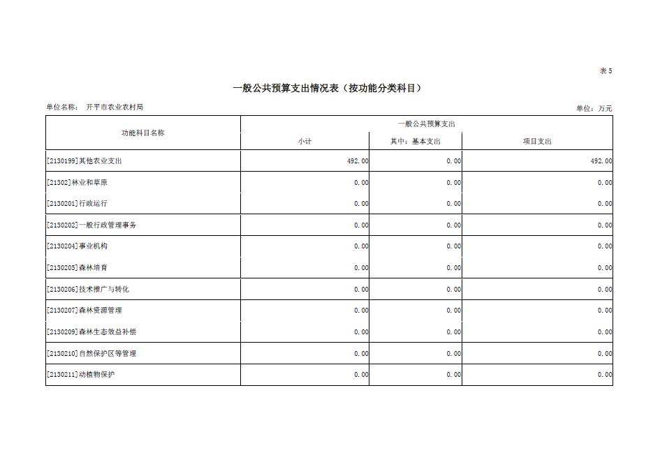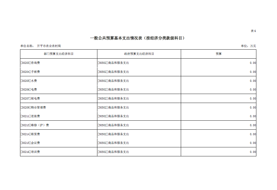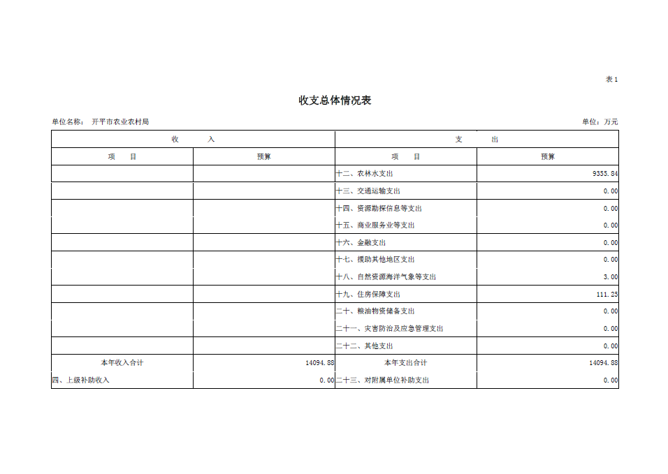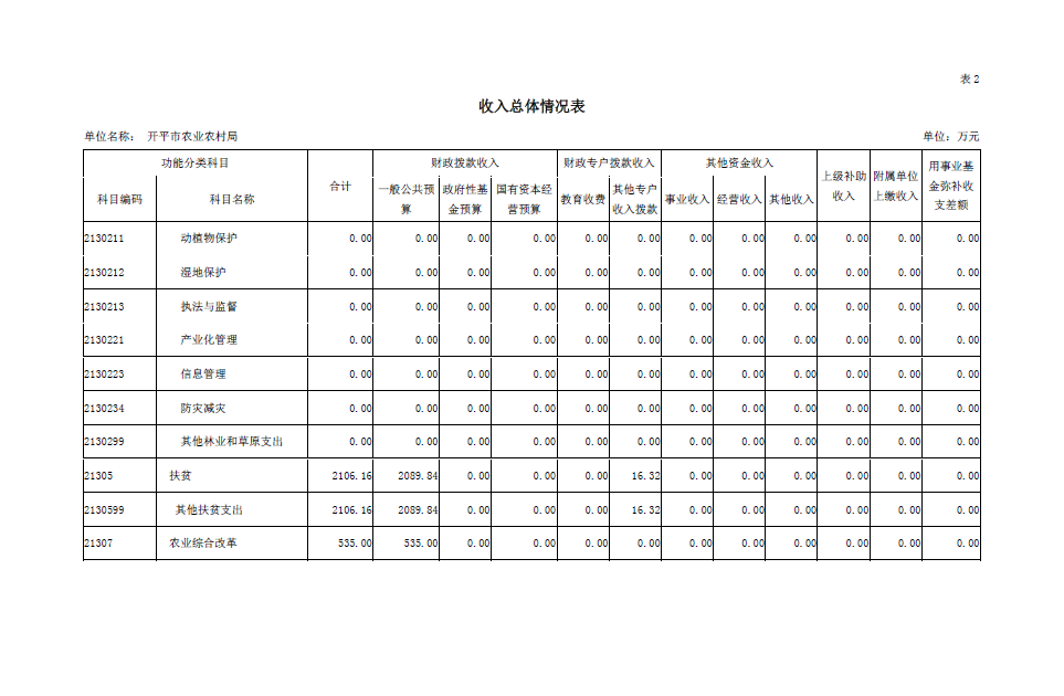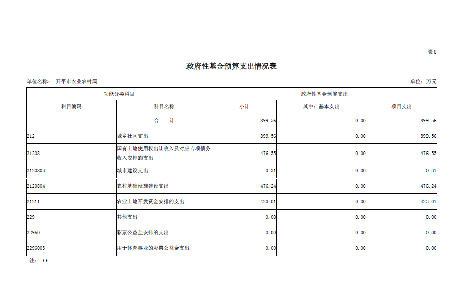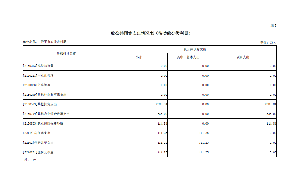 2019年開平市農(nóng)業(yè)農(nóng)村局部門預(yù)算
