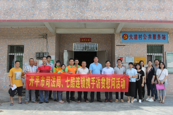 為認真組織開展2017年廣東扶貧濟困日活動,結(jié)合慶祝建黨96周年,6月29日上午,開平市司法局機關(guān)黨支部攜手熱心社會公益企業(yè)開平市七酷連鎖便利店到龍勝鎮(zhèn)開展訪貧慰問活動。