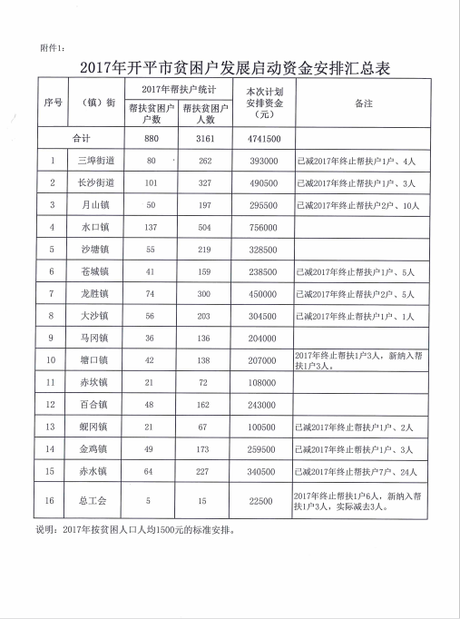 關(guān)于下達(dá)2017年開(kāi)平市貧困戶(hù)發(fā)展啟動(dòng)資金扶持計(jì)劃的通知