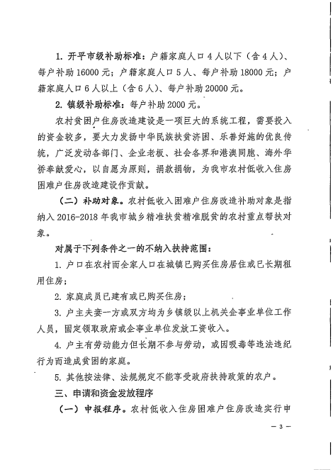 開府辦〔2017〕53號(hào)關(guān)于印發(fā)開平市2016-2018年農(nóng)村低收入住房困難戶住房改造補(bǔ)助方案的通知