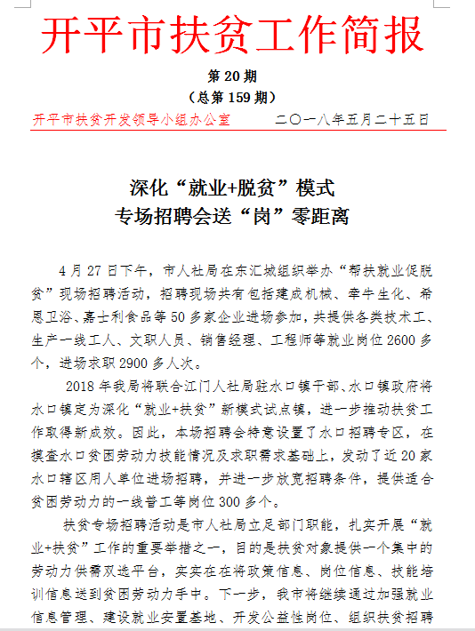 開平市扶貧簡報2018年20期(總第159)