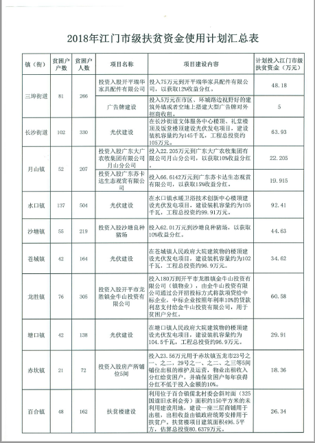 開農(nóng)計[2018]69號關于2018年江門市級扶貧資金使用計劃的批復