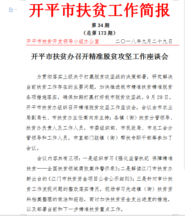 開(kāi)平扶貧工作簡(jiǎn)報(bào)2018年第34期(總第173期)