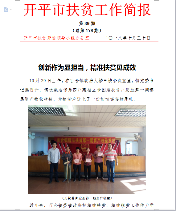 開平市扶貧工作簡(jiǎn)報(bào)2018年第39期(總第178期)