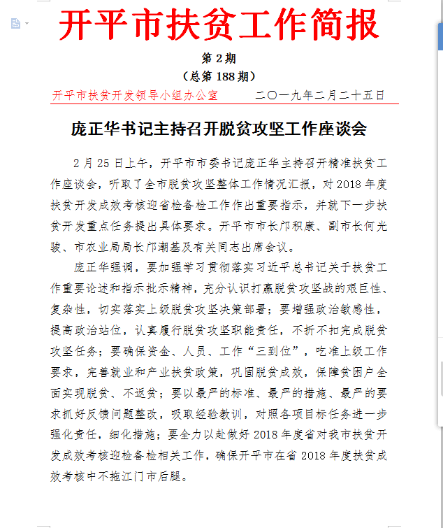 開平市扶貧簡(jiǎn)報(bào)第2期(總期188期)
