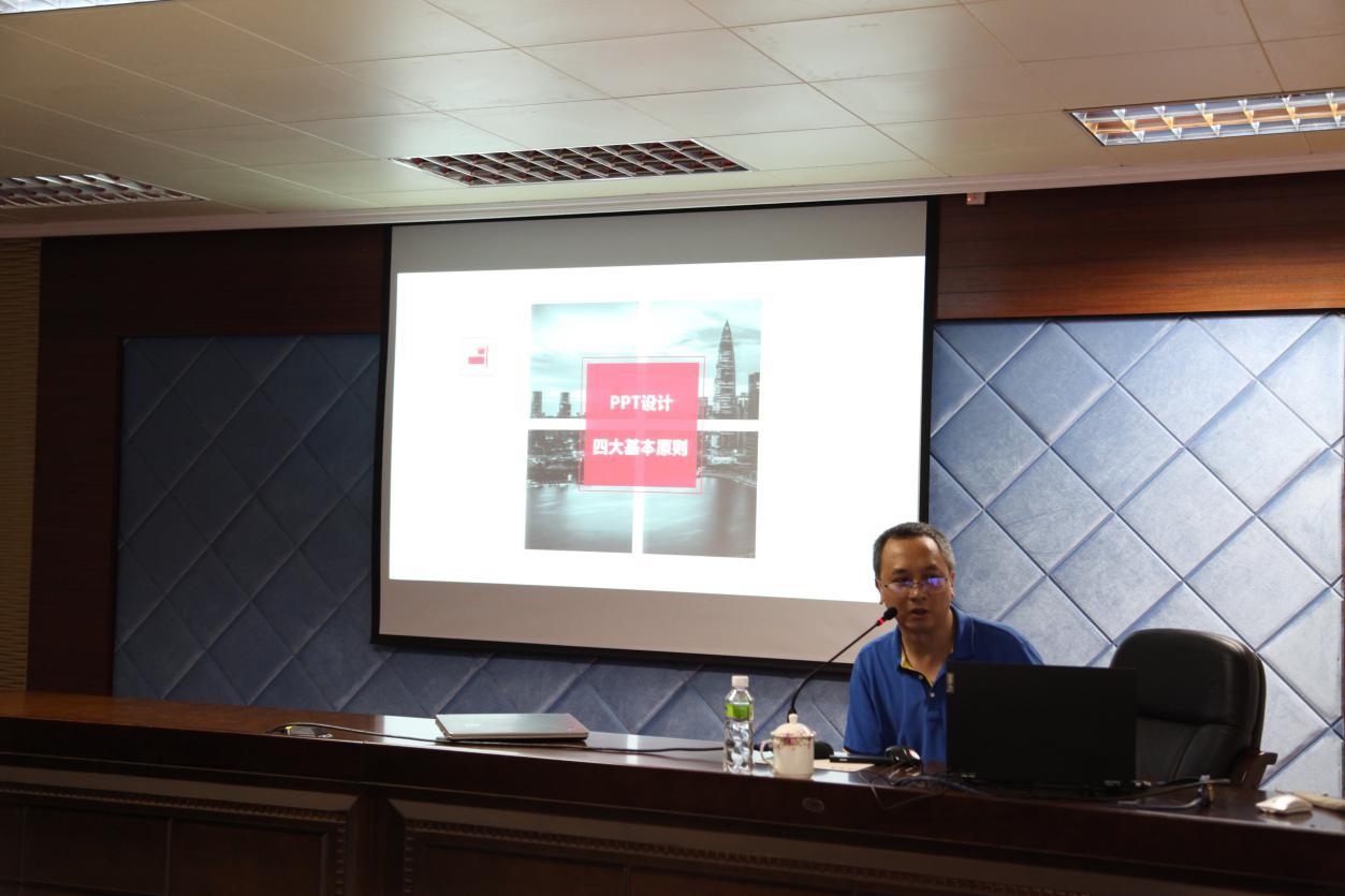 隨后,邀請開平市騰達建設(shè)設(shè)計院楊子暉院長進行授課,楊院長從事設(shè)計工作多年,對于制作演示文稿有獨特的心得體會,會上楊院長與參會人員一起就演示文稿設(shè)計的四大原則進行業(yè)務(wù)交流。