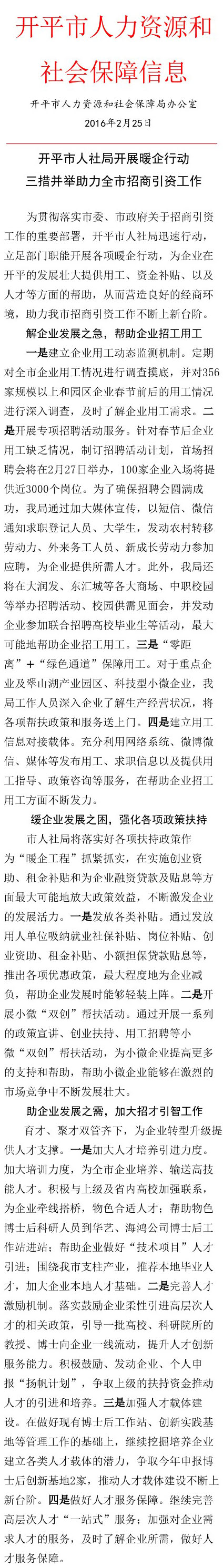 開平市人力資源和社會保障信息20160225