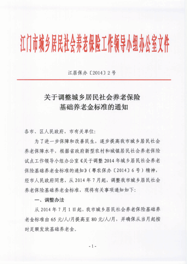 關(guān)于調(diào)整城鄉(xiāng)居民社會養(yǎng)老保險(xiǎn)基礎(chǔ)養(yǎng)老金標(biāo)準(zhǔn)的通知