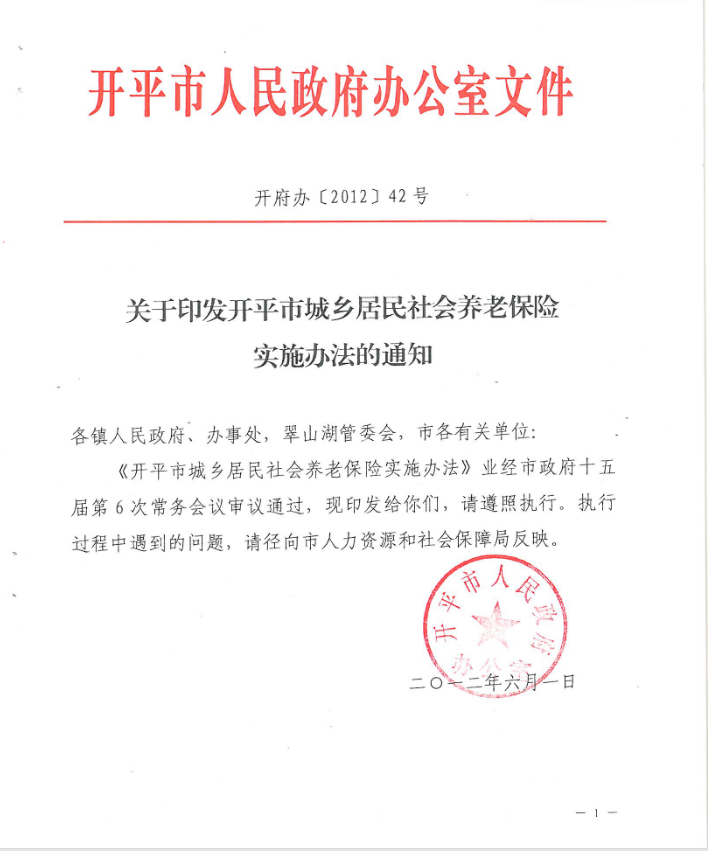 關(guān)于印發(fā)開(kāi)平市城鄉(xiāng)居民社會(huì)養(yǎng)老保險(xiǎn)實(shí)施辦法的通知