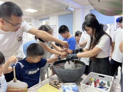 本次活動(dòng)集知識(shí)性、趣味性、體驗(yàn)性為一體,共分為非遺漆扇制作體驗(yàn)與杯子蛋糕制作兩部分?;顒?dòng)現(xiàn)場(chǎng),每組家庭聽取了漆扇老師關(guān)于漆扇的歷史發(fā)展和制作工藝介紹,均被漆扇獨(dú)特的藝術(shù)魅力和深厚的文化底蘊(yùn)深深吸引。通過親手制作屬于自己獨(dú)一無二的漆扇,深深體驗(yàn)了中國非遺技藝的魅力。隨后,每組家庭在烘焙老師的指導(dǎo)下,親手制作杯子蛋糕,領(lǐng)略烘焙的無窮樂趣。每個(gè)孩子變身小小魔法師,用奶油、水果、餅干等對(duì)蛋糕胚進(jìn)行“化妝”,現(xiàn)場(chǎng)一片歡聲笑語。