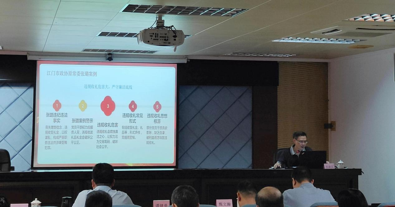 開平市人社局黨組書記、局長譚健勇同志以《貫徹落實中央八項規(guī)定精神 持之以恒加強作風(fēng)建設(shè)》為題講授專題黨課,系統(tǒng)梳理了出臺中央八項規(guī)定的歷史沿革,闡釋了中央八項規(guī)定精神內(nèi)涵,重點剖析發(fā)生在人社領(lǐng)域、江門地區(qū)的違紀(jì)違法典型案例,并對人社作風(fēng)建設(shè)提出了具體要求:一是思想認(rèn)識要持續(xù)深化,學(xué)深悟透習(xí)近平總書記關(guān)于作風(fēng)建設(shè)的重要論述和中央八項規(guī)定精神,筑牢信仰之基;二是日常監(jiān)督要抓早抓小,全面深入、常態(tài)化開展“四風(fēng)”問題排查整改,堅持“當(dāng)下改”與“長久立”相結(jié)合,確保作風(fēng)常治長效;三是工作任務(wù)要求真務(wù)實,堅持圍繞中心、服務(wù)大局,將作風(fēng)建設(shè)煥發(fā)出來的工作熱情和進(jìn)取精神轉(zhuǎn)化為攻堅克難、干事創(chuàng)業(yè)的強大動力,推動人社事業(yè)優(yōu)質(zhì)發(fā)展。