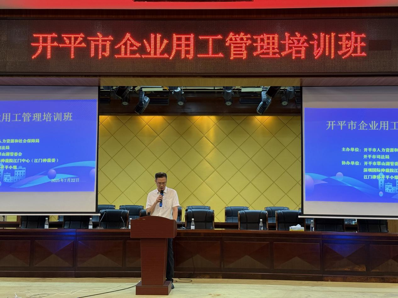 本次培訓(xùn)班上,律師代表就“企業(yè)勞動(dòng)用工規(guī)范與風(fēng)險(xiǎn)防范實(shí)務(wù)指南”進(jìn)行專題講解,結(jié)合典型案例與工作實(shí)際,指出企業(yè)用工管理過(guò)程中可能存在的風(fēng)險(xiǎn)點(diǎn),例如“勞動(dòng)合同簽訂規(guī)范”“員工離職管理”“工傷事故處理流程”等,指導(dǎo)企業(yè)通過(guò)完善規(guī)章制度、加強(qiáng)勞動(dòng)合同管理、強(qiáng)化協(xié)商協(xié)調(diào)等方式健全管理機(jī)制。同時(shí),深圳國(guó)際仲裁院江門(mén)中心有關(guān)負(fù)責(zé)同志圍繞“企業(yè)法律風(fēng)險(xiǎn)防范與爭(zhēng)議解決路徑選擇”提出策略與建議。