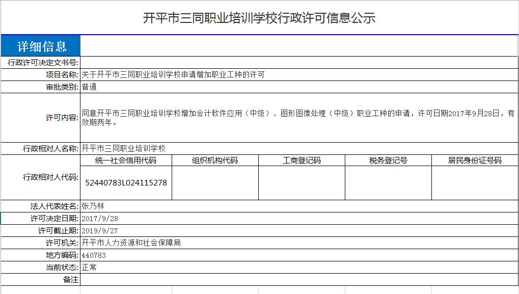 開平市三同職業(yè)培訓(xùn)學(xué)校行政許可信息公示