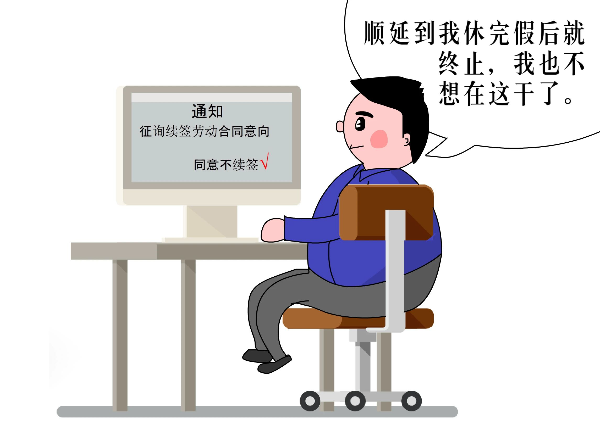 休假期間,人事經(jīng)理給他發(fā)了一份意向征集表,詢問(wèn)他是否續(xù)簽勞動(dòng)合同。由于小郭原本也有跳槽的想法,于是他打算將勞動(dòng)合同順延至病假結(jié)束后就終止,所以選擇了“不續(xù)簽”,并表示希望將合同順延至病假結(jié)束。沒(méi)想到,小郭病假還沒(méi)休完,就收到了公司終止勞動(dòng)合同的通知。