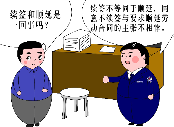 監(jiān)察員了解情況后告訴他,續(xù)簽不等同于順延,公司對(duì)此的解釋是錯(cuò)誤的。勞動(dòng)合同順延是指勞動(dòng)合同期滿時(shí),由于法定順延事由的出現(xiàn),導(dǎo)致勞動(dòng)合同不能終止,需要依法順延至法定事由消失后,才可以終止;續(xù)簽是當(dāng)期勞動(dòng)合同終止后,重新簽訂一份勞動(dòng)合同。因此,小郭同意不續(xù)簽,與其要求順延勞動(dòng)合同的主張并不相悖。