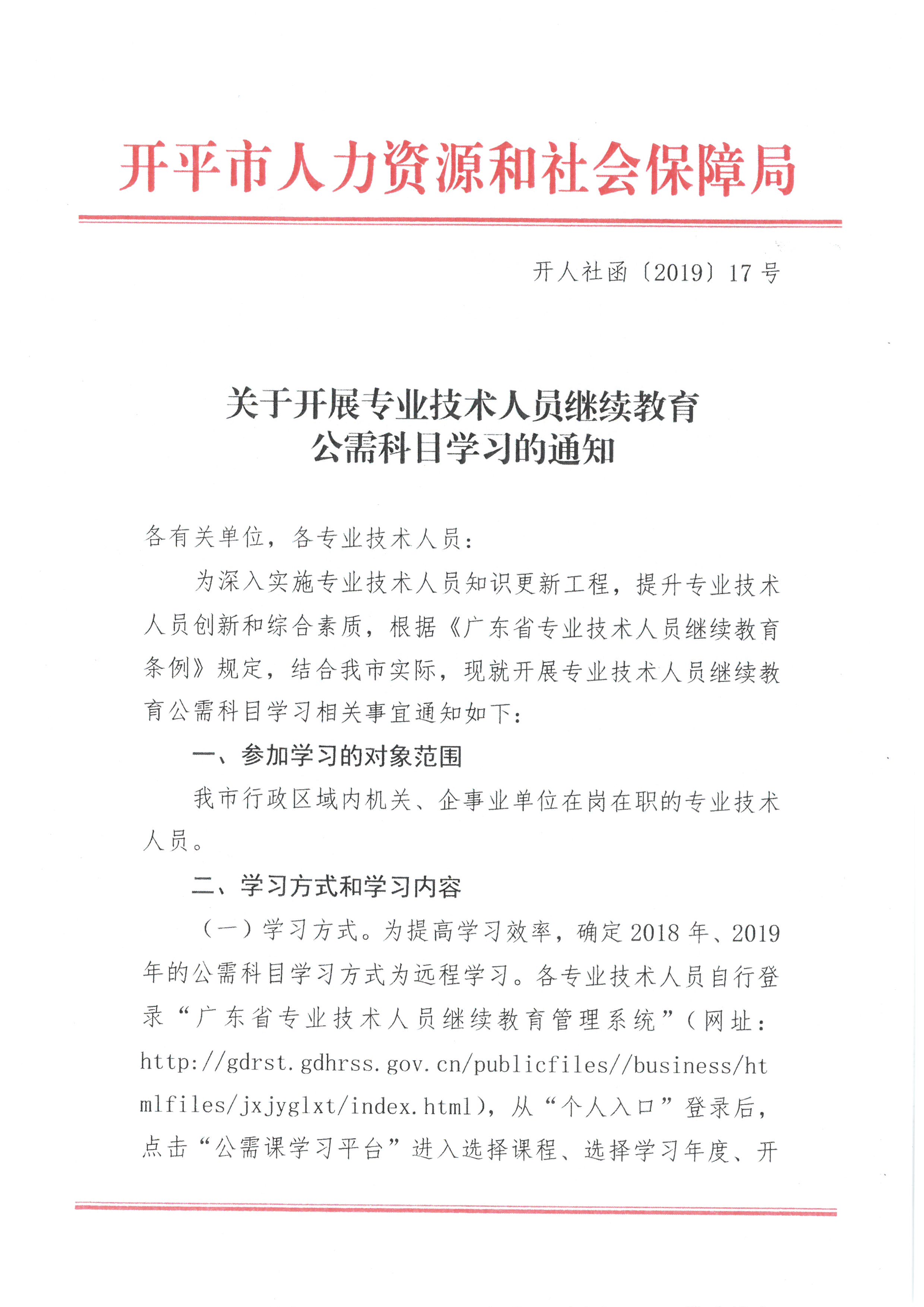 關(guān)于開展專業(yè)技術(shù)人員繼續(xù)教育公需科目學(xué)習(xí)的通知