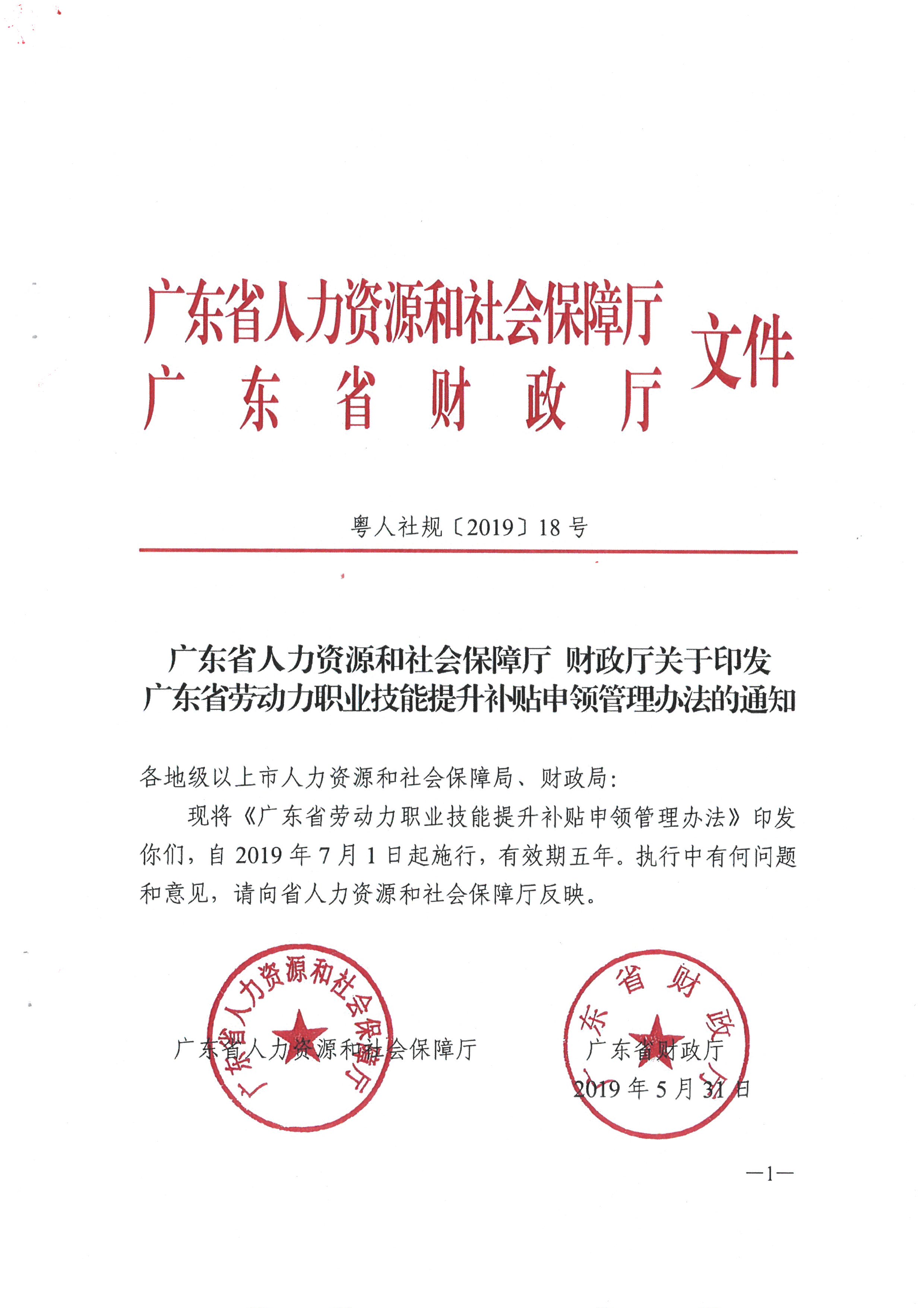 廣東省人力資源和社會(huì)保障廳 財(cái)政廳關(guān)于印發(fā)廣東省勞動(dòng)力職業(yè)技能提升補(bǔ)貼申領(lǐng)管理辦法的通知(粵人社規(guī)[2019] 18號(hào))