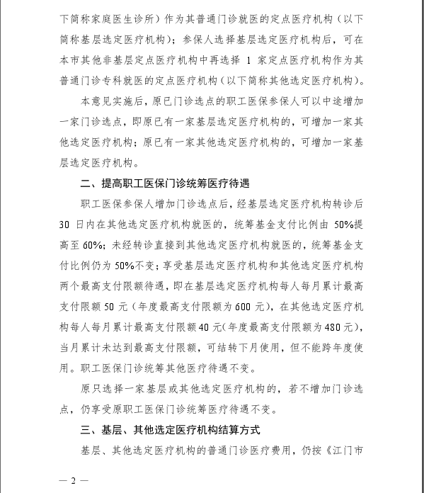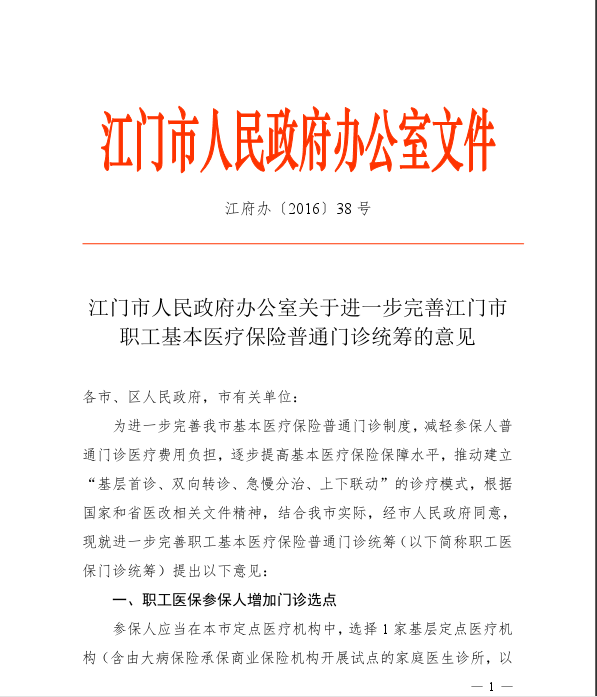 江門(mén)市人民政府辦公室關(guān)于進(jìn)一步完善江門(mén)市職工基本醫(yī)療保險(xiǎn)普通門(mén)診統(tǒng)籌的意見(jiàn)
