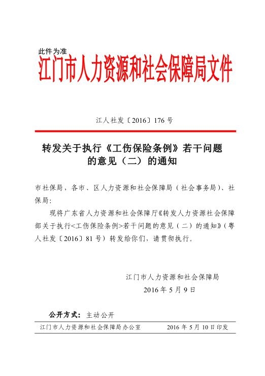 轉(zhuǎn)發(fā)關(guān)于執(zhí)行《工傷保險條例》若干問題的意見(二)的通知