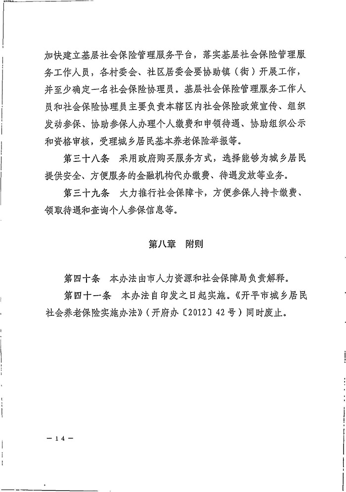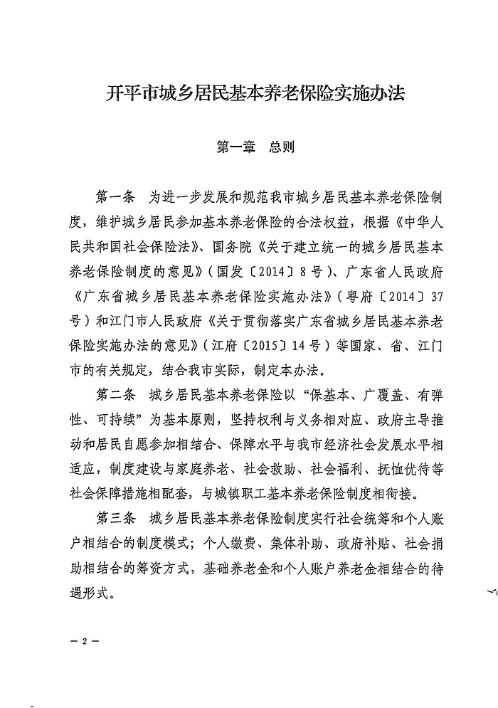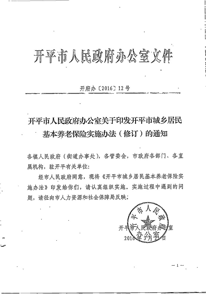 關(guān)于印發(fā)開平市城鄉(xiāng)居民基本養(yǎng)老保險實施辦法(修訂)的通知
