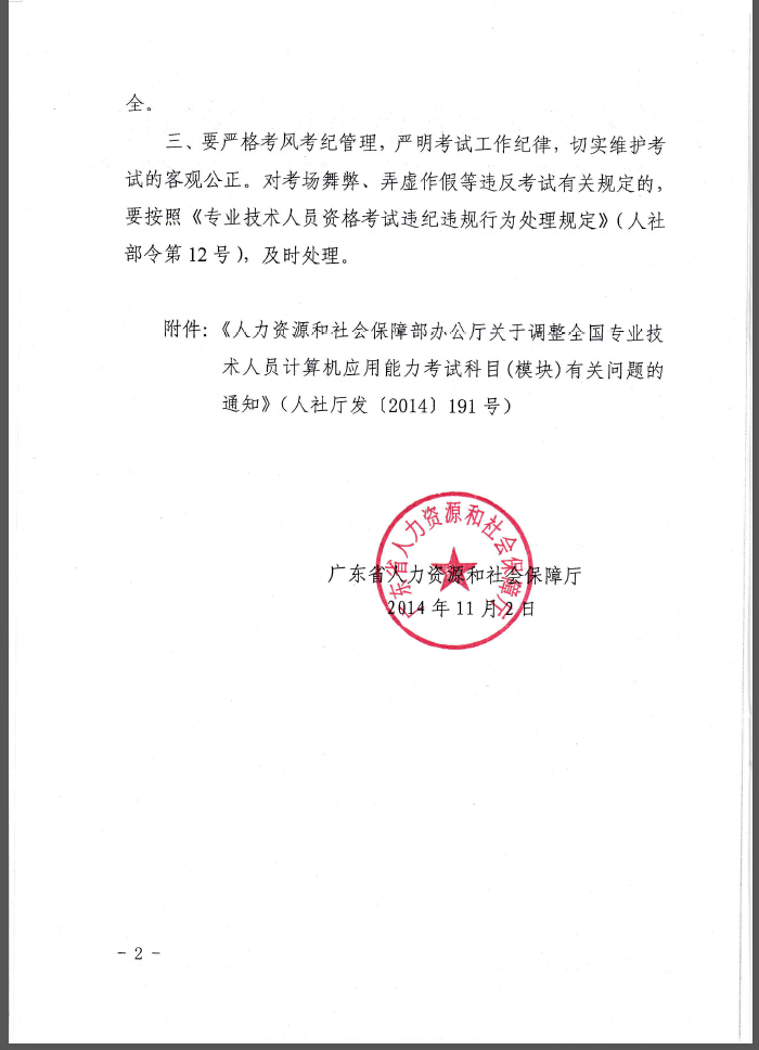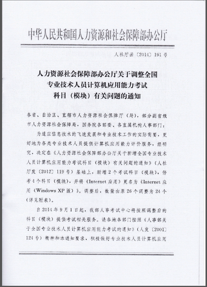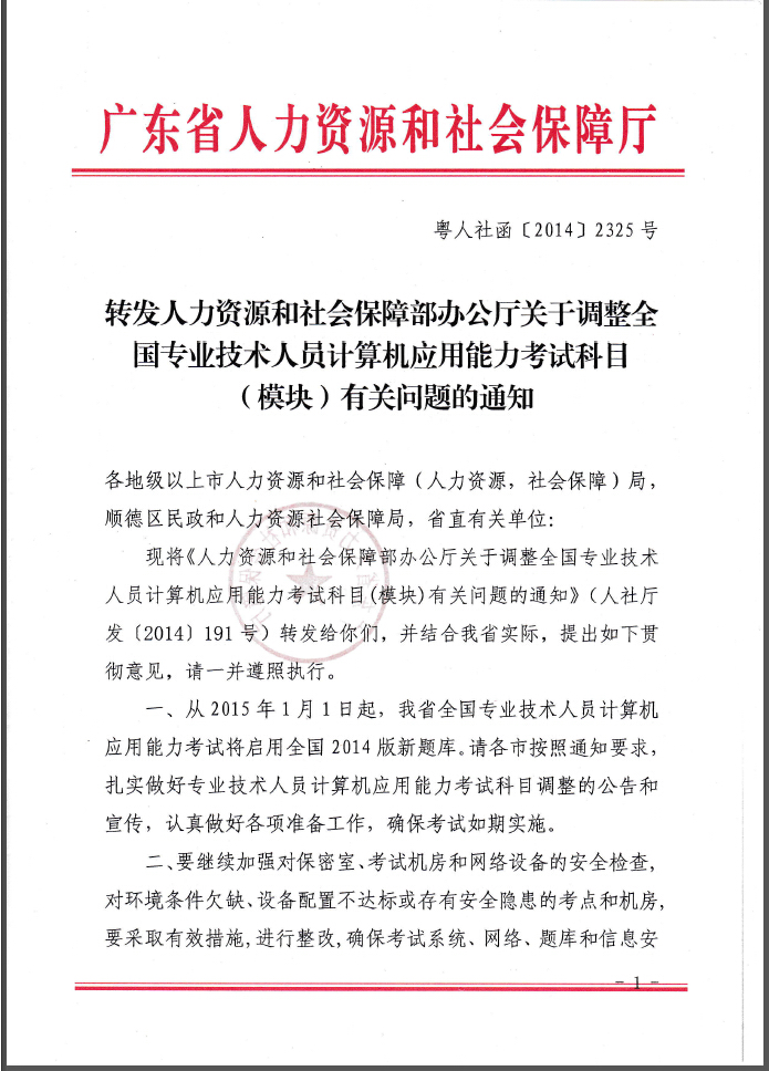 轉(zhuǎn)發(fā)人社部關(guān)于調(diào)整計算機能力考試科目的通知(粵人社函[2014]2325號