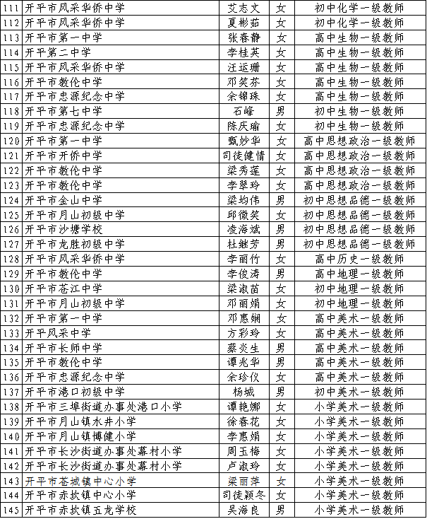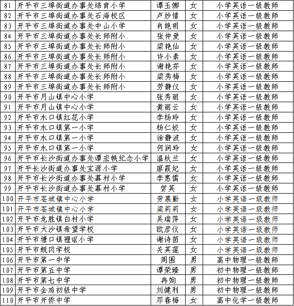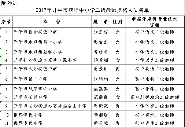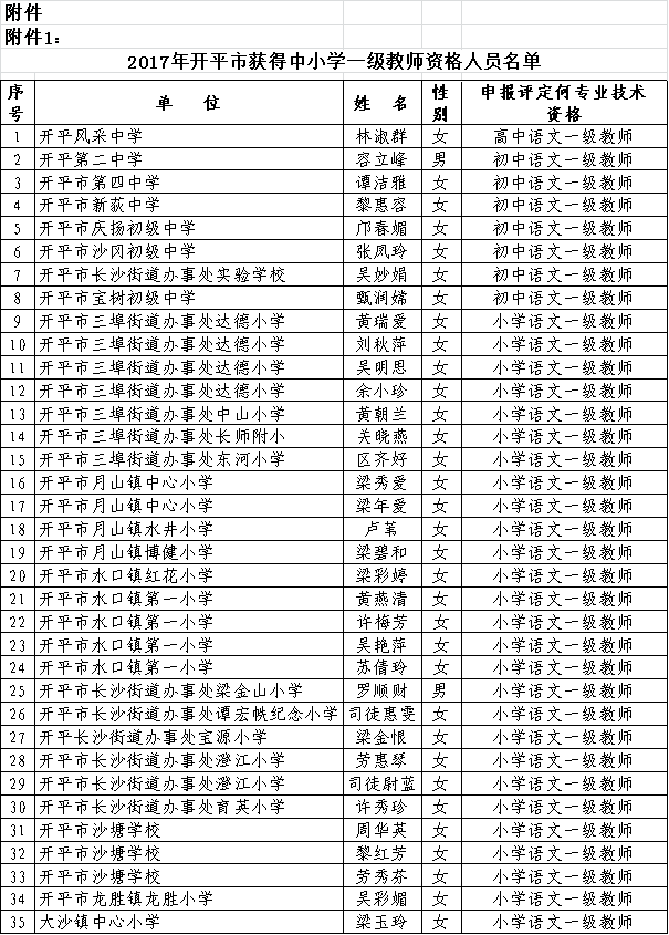 附件:1.2017年開(kāi)平市獲得中小學(xué)一級(jí)教師資格人員名單