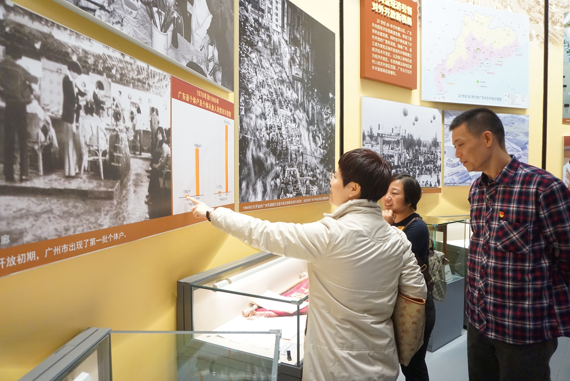 在深圳改革開放展館內(nèi),甄雪英帶領(lǐng)黨員干部首先觀看了《大潮起珠江》短片,結(jié)合翔實(shí)的圖文資料和現(xiàn)場(chǎng)展品,回顧了1978年至2018年以來廣東波瀾壯闊的改革開放歷程。甄雪英來到“積極培育市場(chǎng)體系”“大力發(fā)展個(gè)體經(jīng)營(yíng)”展廳時(shí),駐足端詳“20世紀(jì)80年代中期,廣東逐步推進(jìn)金融、勞務(wù)、人才、房地產(chǎn)、科技和信息等要素市場(chǎng)的發(fā)展和成長(zhǎng)”“ 20世紀(jì)80年代后,廣東逐步放開對(duì)承包方法和經(jīng)營(yíng)方式的限制,推動(dòng)個(gè)體及公有制經(jīng)濟(jì)成分的發(fā)展,為社會(huì)經(jīng)濟(jì)發(fā)展注入活力”“1978年和1990年廣東省個(gè)體戶和個(gè)體從業(yè)人員情況示意圖”等,感觸頗深,并結(jié)合當(dāng)前市場(chǎng)監(jiān)管服務(wù)職能,現(xiàn)場(chǎng)向黨員們講授黨課。